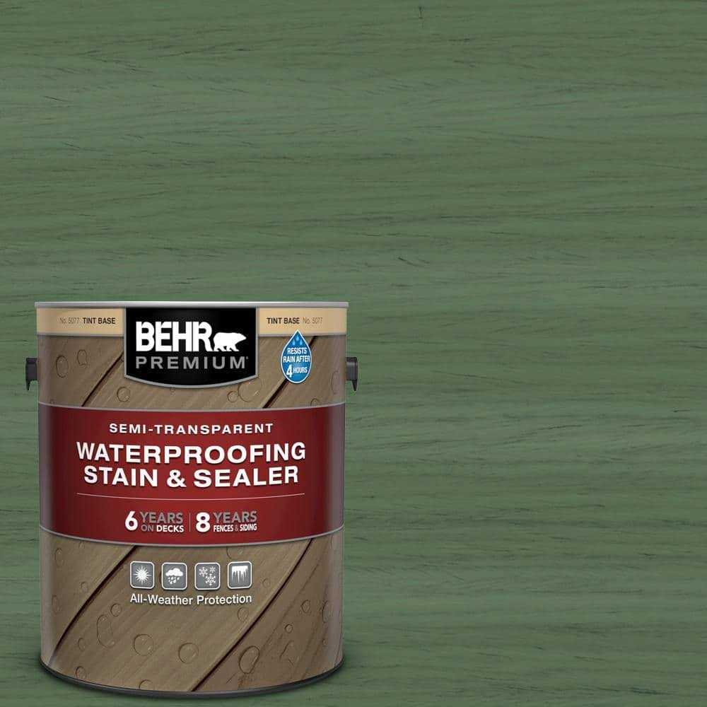 BEHR Premium 1 gal. #ST-126 Woodland Green Semi-Transparent Waterproofing Exterior Wood Stain and Sealer