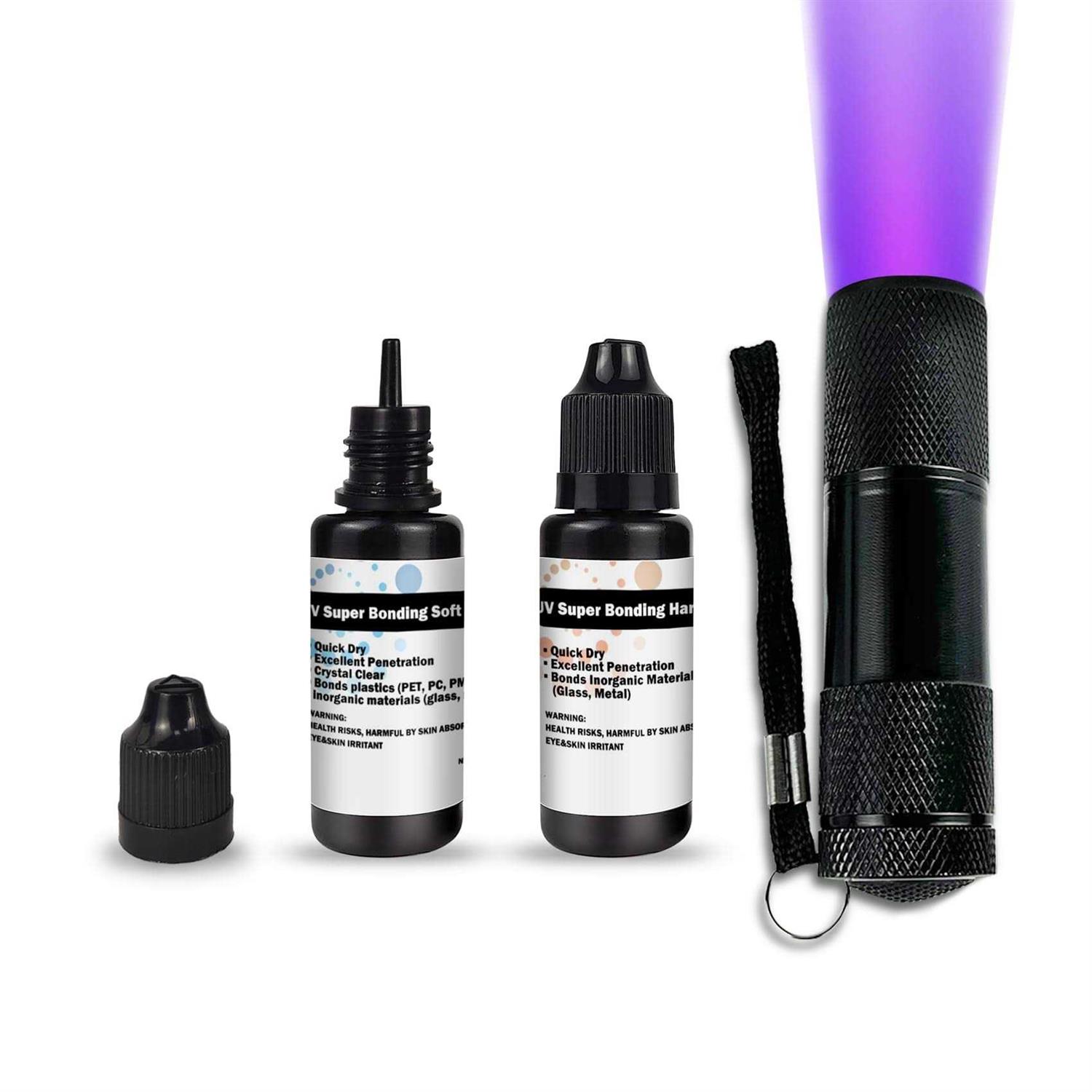 EDSRDXS UV Bonding & Welding Glue Kit UV Super Bonding Soft & Hard Glue with Black Light