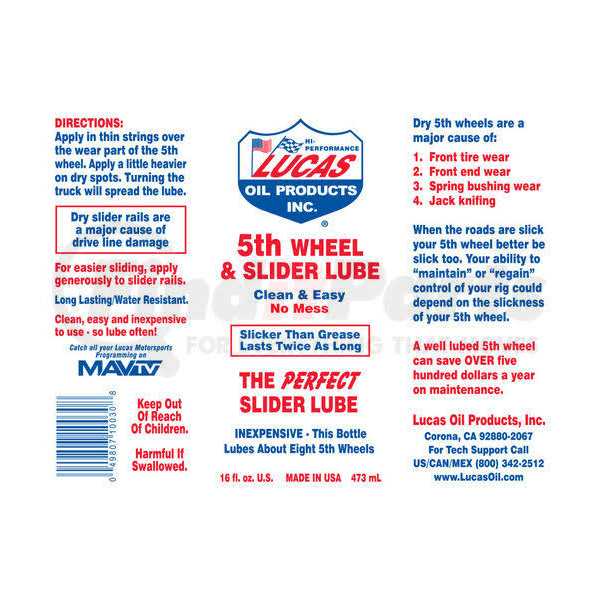 Lucas Oil 10030 5th Wheel & Slider Lube