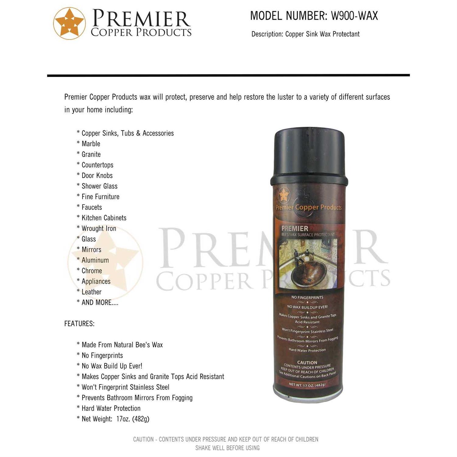 Premier Copper Products W900-Wax Copper Sink Wax Protectant