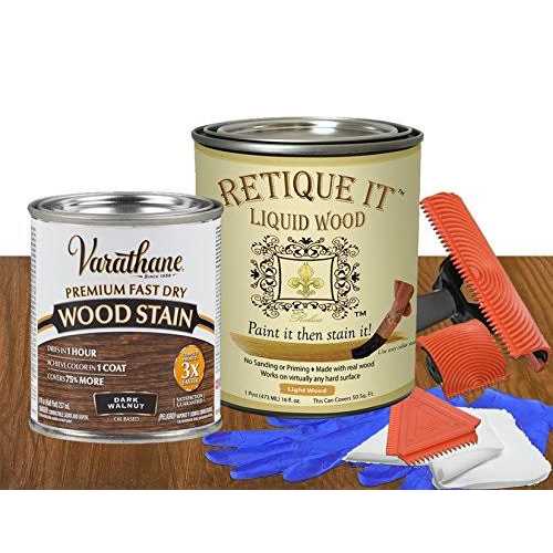 Retique It Wood Finish Tabletop Kit – GO Beyond Faux Wood with Paintable Liquid Wood Based Primer and Gel Stain
