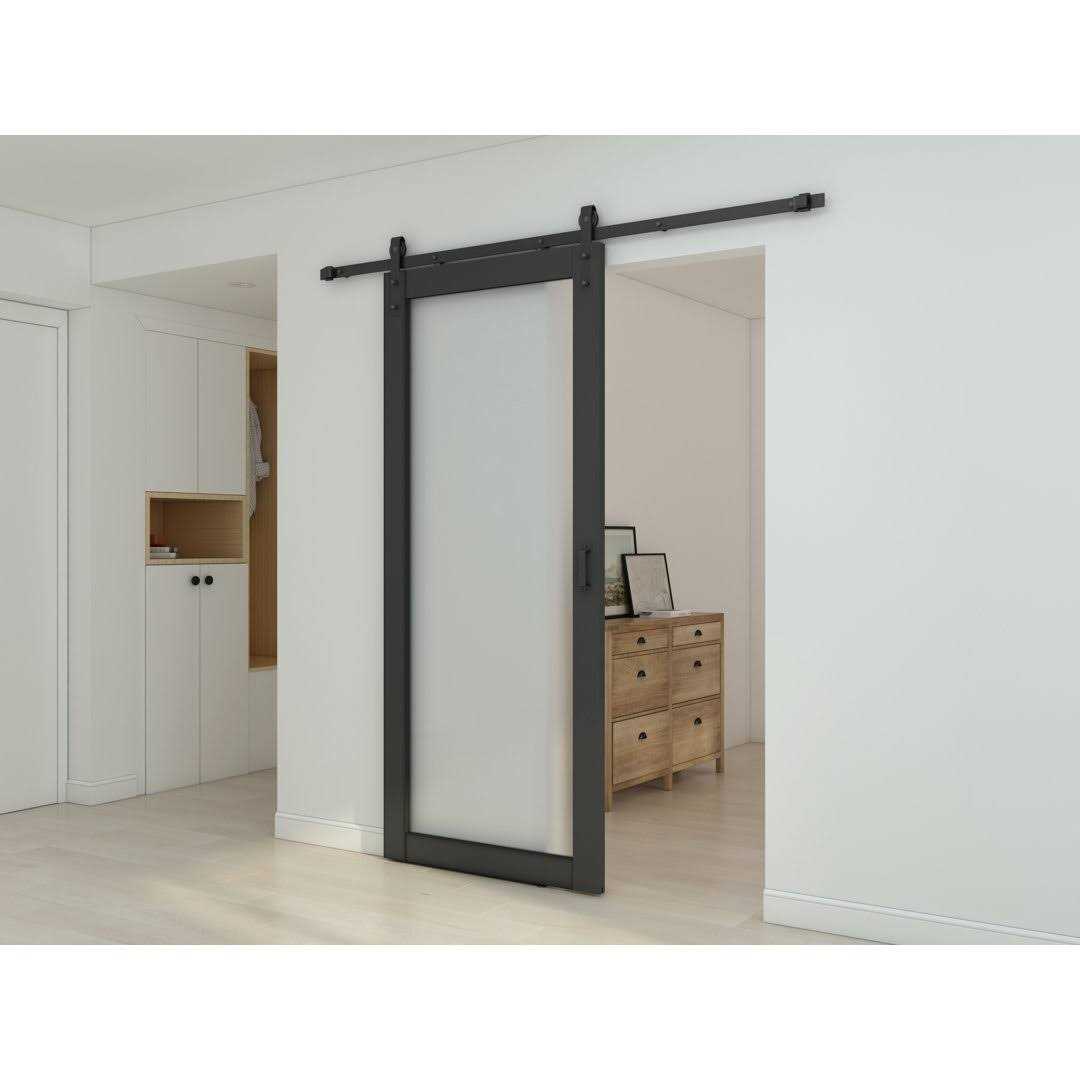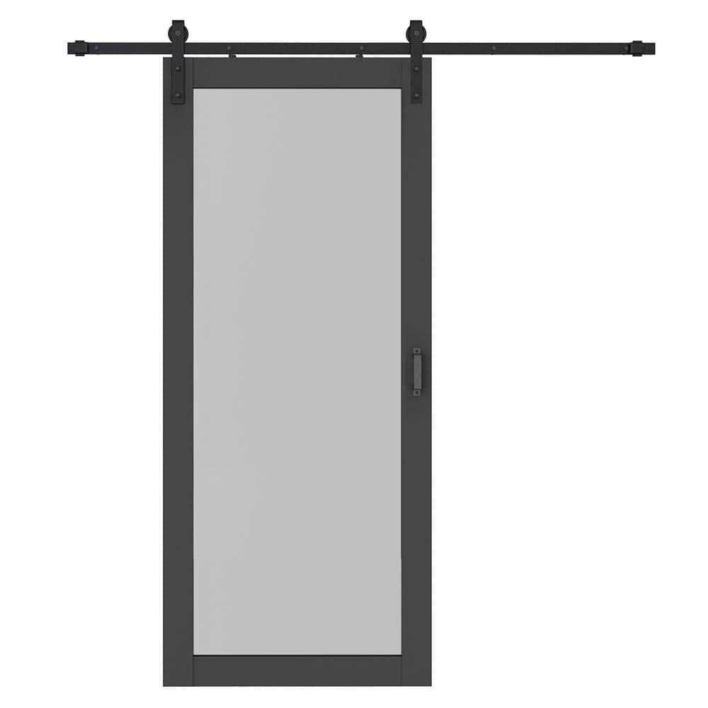 CALHOME 36-in x 84-in Powder Coating with Frosted Glass Single Barn Door