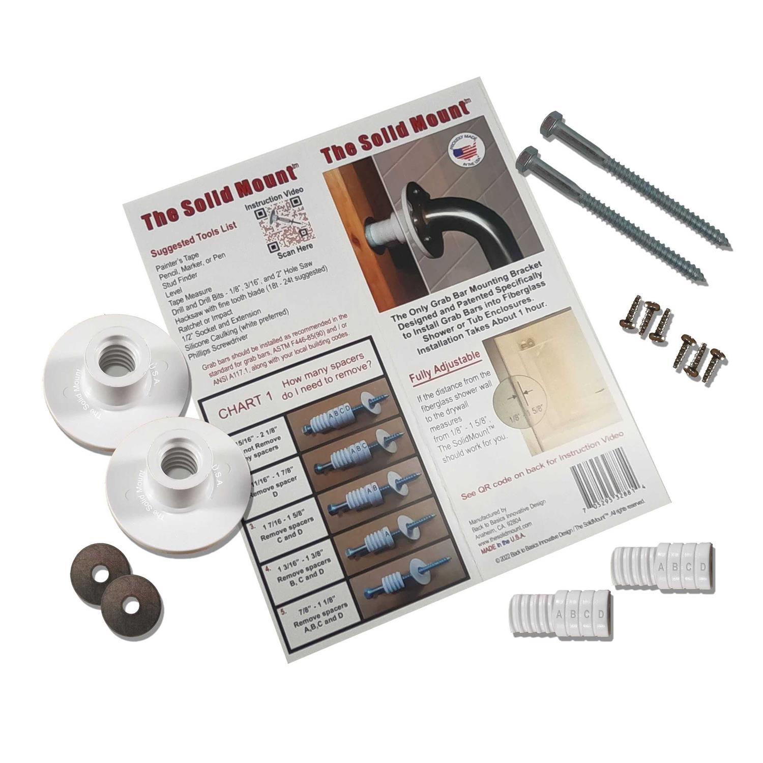 Grab Bar Mounting Kit for Fiberglass Showers -The “Original” Solid Mount