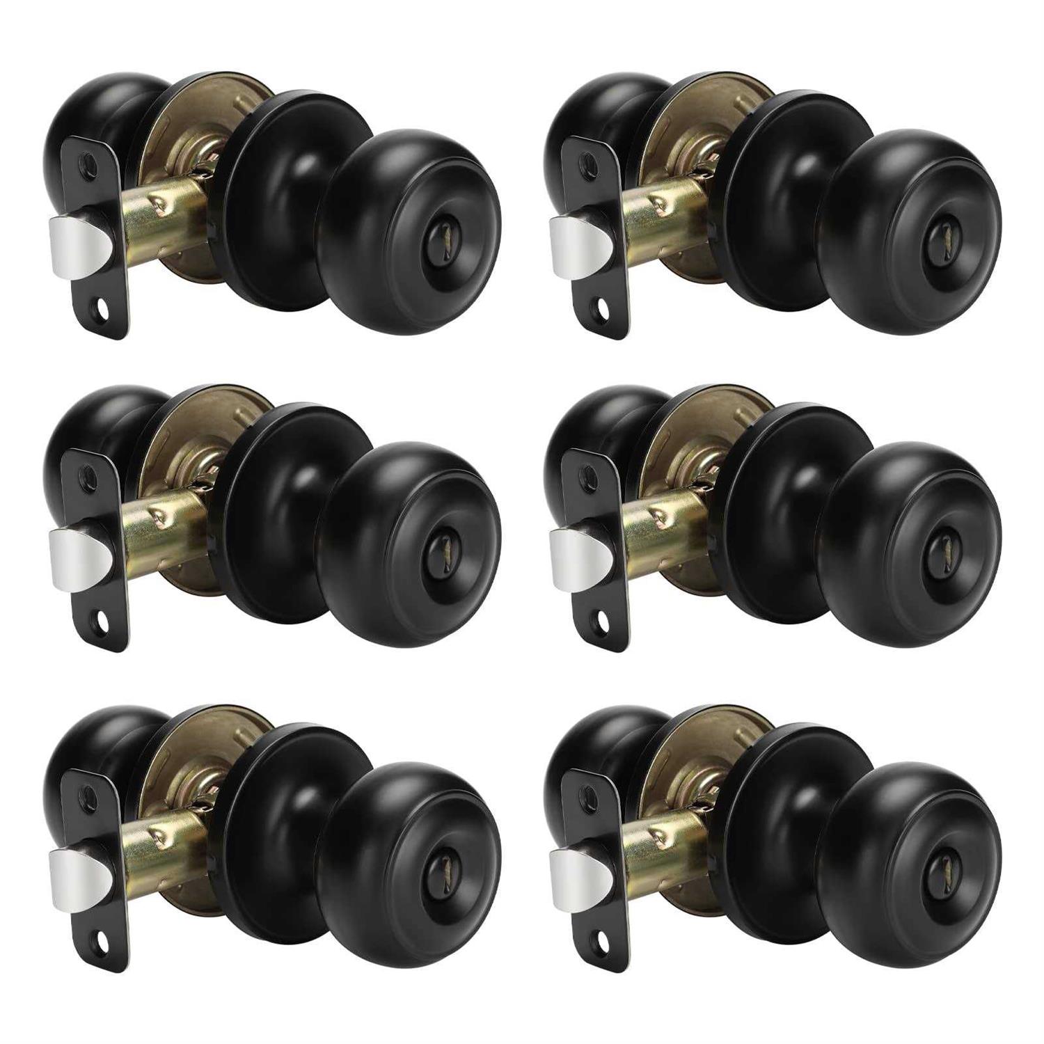 Haidms 6 Pack Matte Black Door Knobs Interior, Privacy Interior Door Knob for Bedroom or Bathroom Classic Black Round Doorknobs Hardware