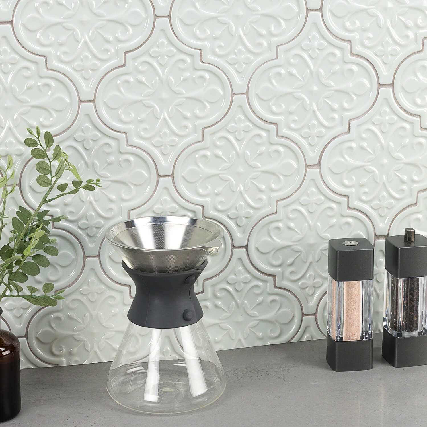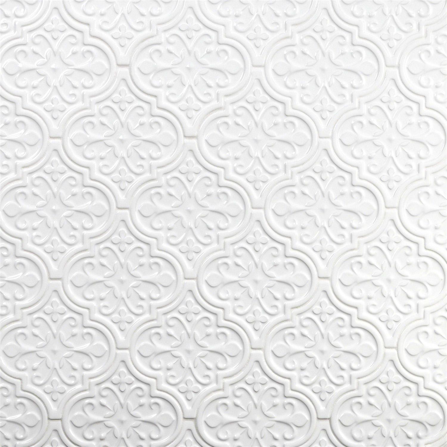 Ivy Hill Tile Byzantine Florid Arabesque Bianco Ceramic White Wall Tile