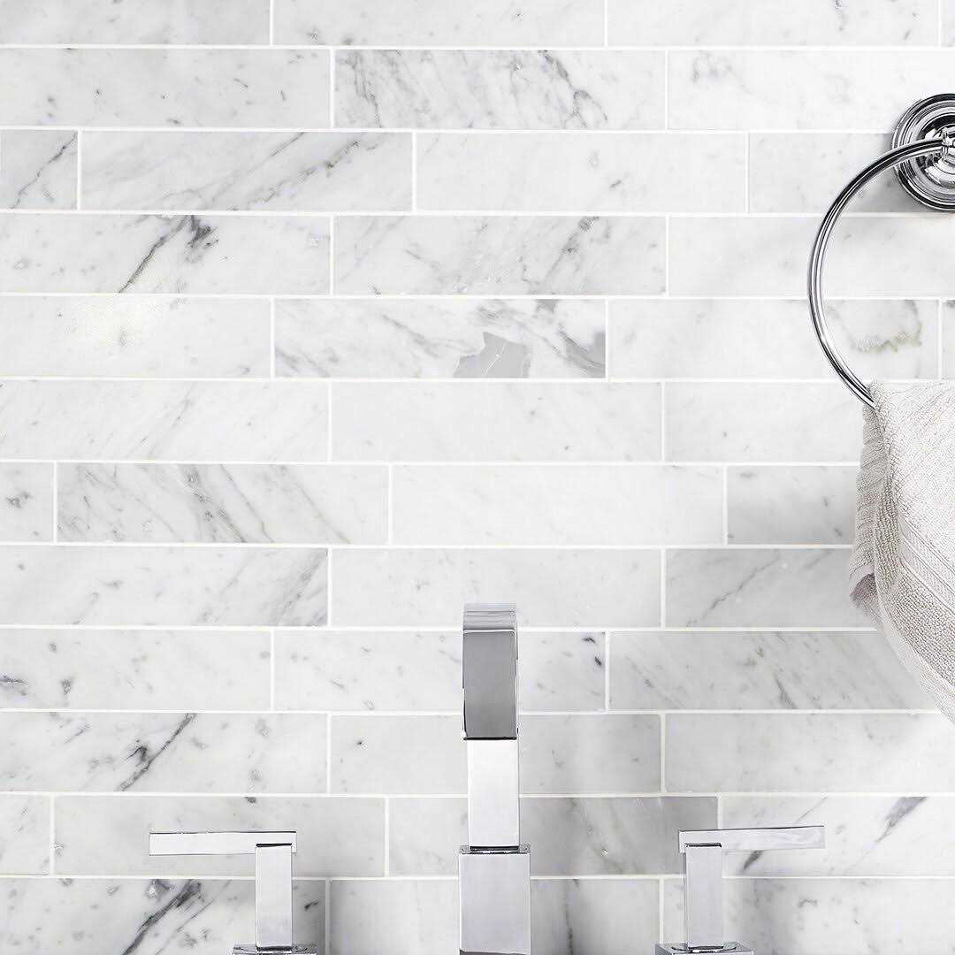 Ivy Hill Tile Brushed White Carrara 2 in. x 8 in. Marble Floor and Wall Subway Tile