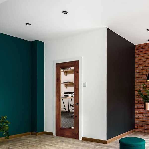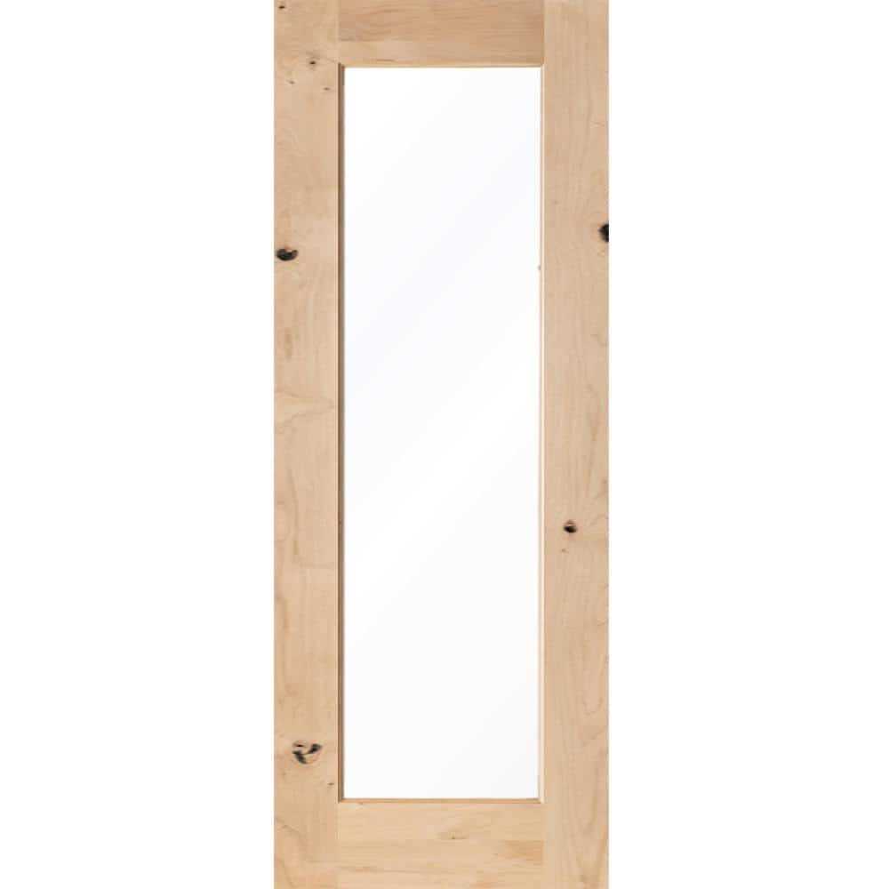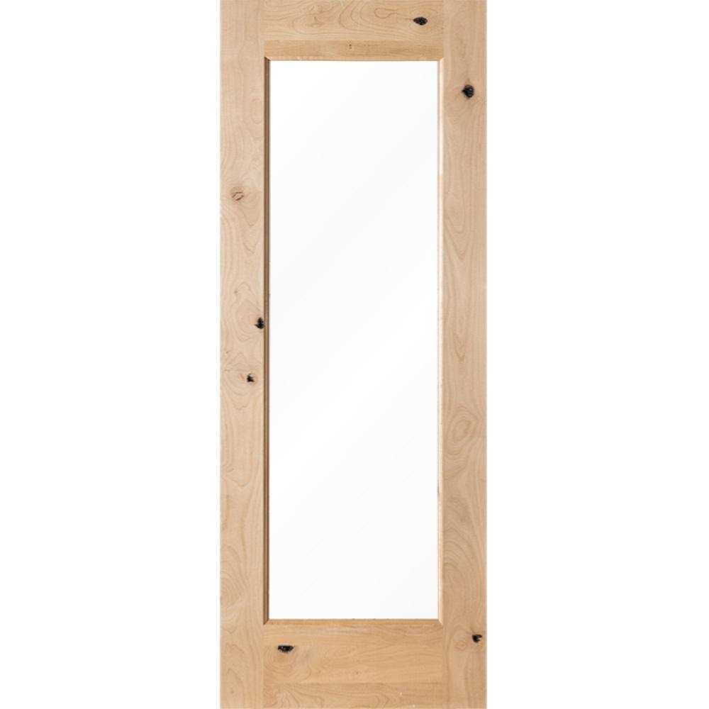 Krosswood Doors Modern Knotty Alder Clear Glass Window Interior Wood Door