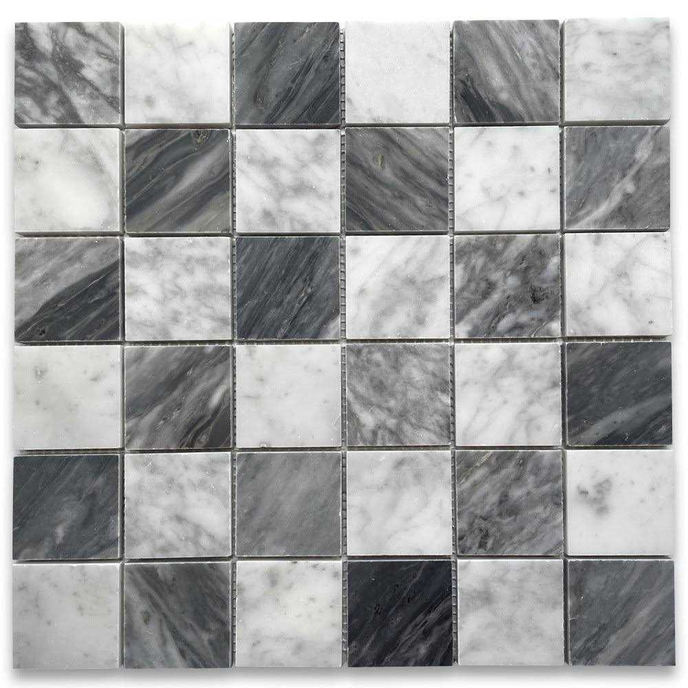 Marble Online Carrara White Gray Black Marble Plaid Tartan Gingham Tile Polished