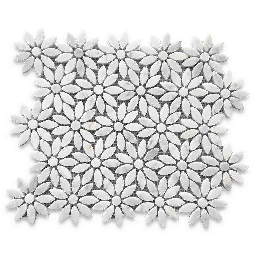 Marble Online Daisy Flower Tile Carrara Venato White Carrera Marble Mosaic Polished