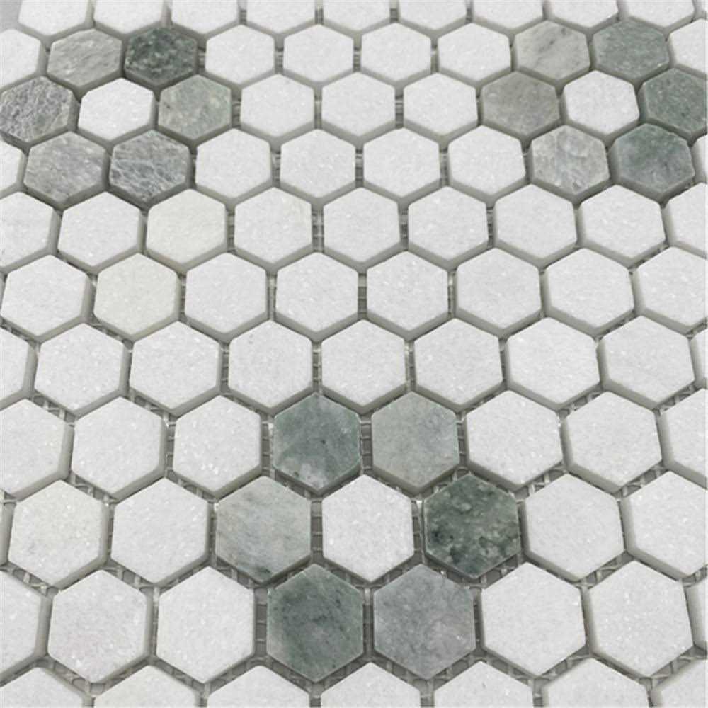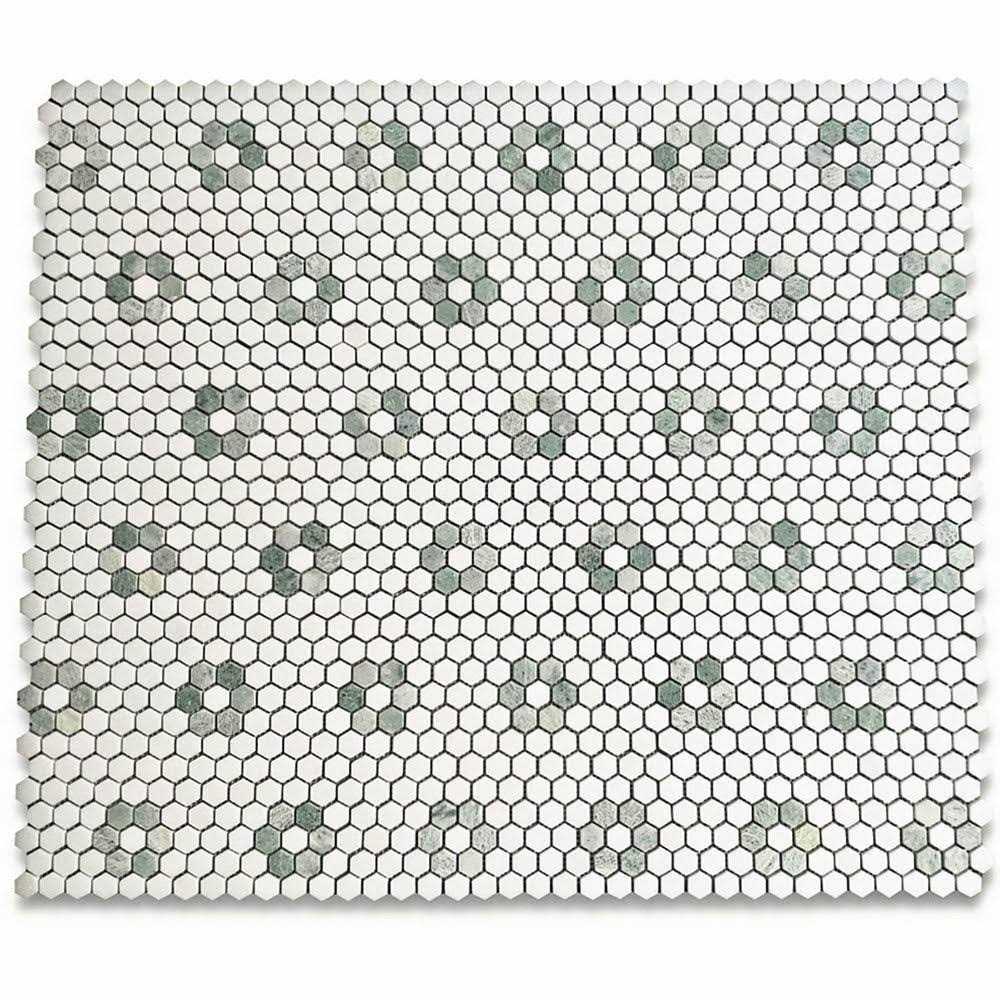 Marble Online Ming Green Thassos White Rosette Marble Hexagon Mosaic Tile