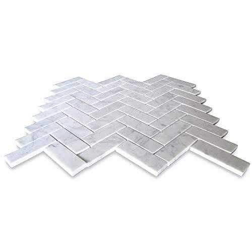 Marble Online Herringbone Mosaic White Carrara Venato Carrera Marble Tile Honed 1×3