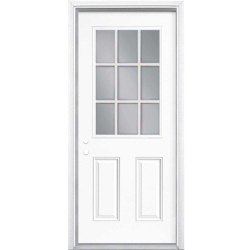 Masonite 80-in Steel Half Lite Inswing Primed Prehung Single Front Door with Brickmould Insulating Core