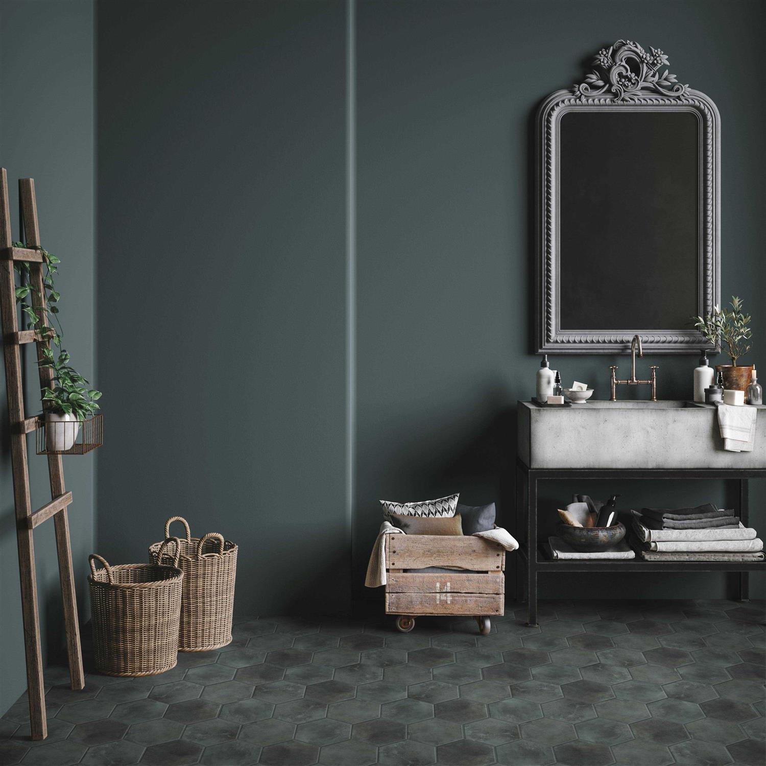 Merola Tile Heritage Hex Shadow 7 in. x 8 in. Porcelain Floor and Wall Tile