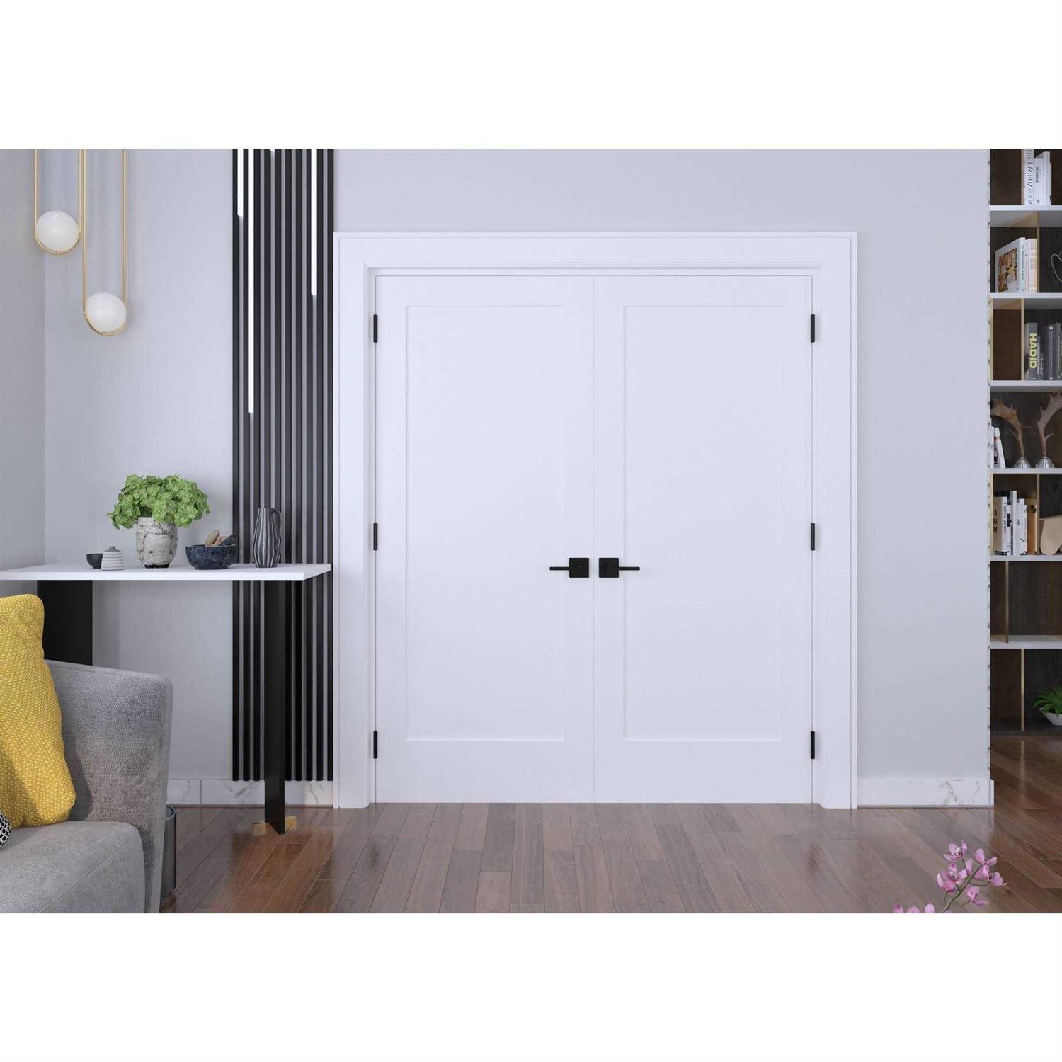 Newton Solid Core Primed Double Prehung French Door with Catch Ball and Satin Nickel Hinges RESO