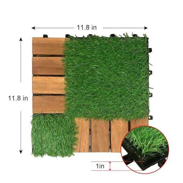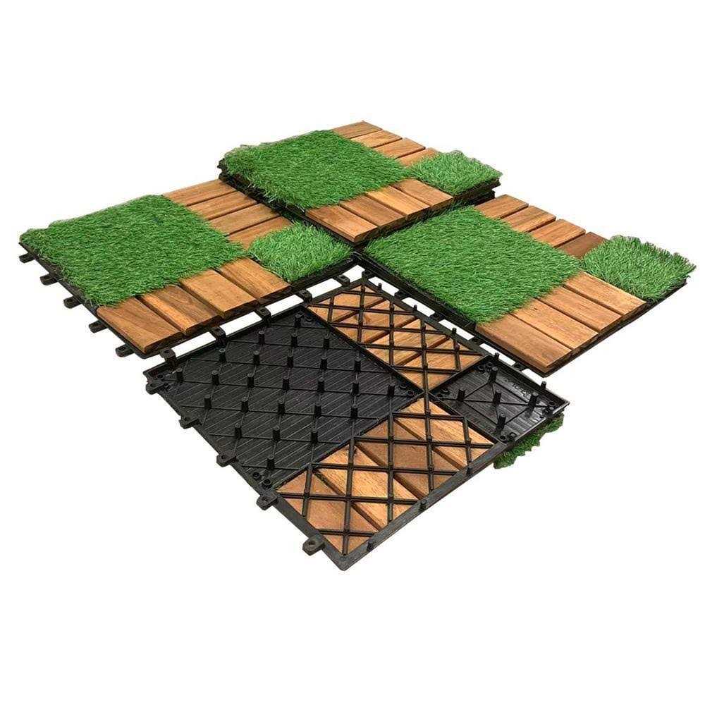 Pro Space 12 in. x 12 Acacia Wood Interlocking Flooring Tiles Grass Green PINS