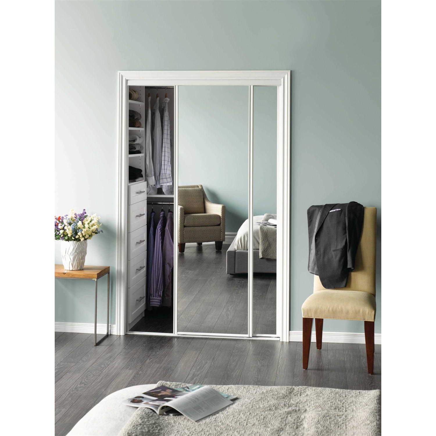 ReliaBilt 60-in x 80-in White Mirrored Glass Prefinished Mirror Sliding Door Hardware Included 440223