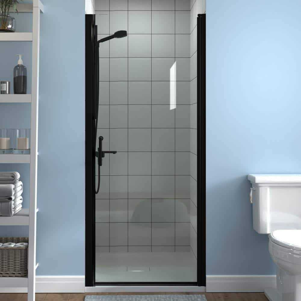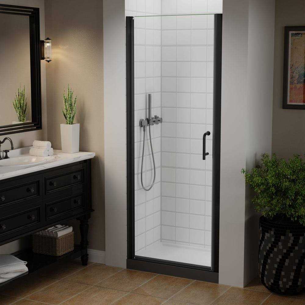 ES-DIY 72 in. H Pivot Semi Frameless Swing Corner Shower Panel with Shower Door in Matte Black with Clear Glass