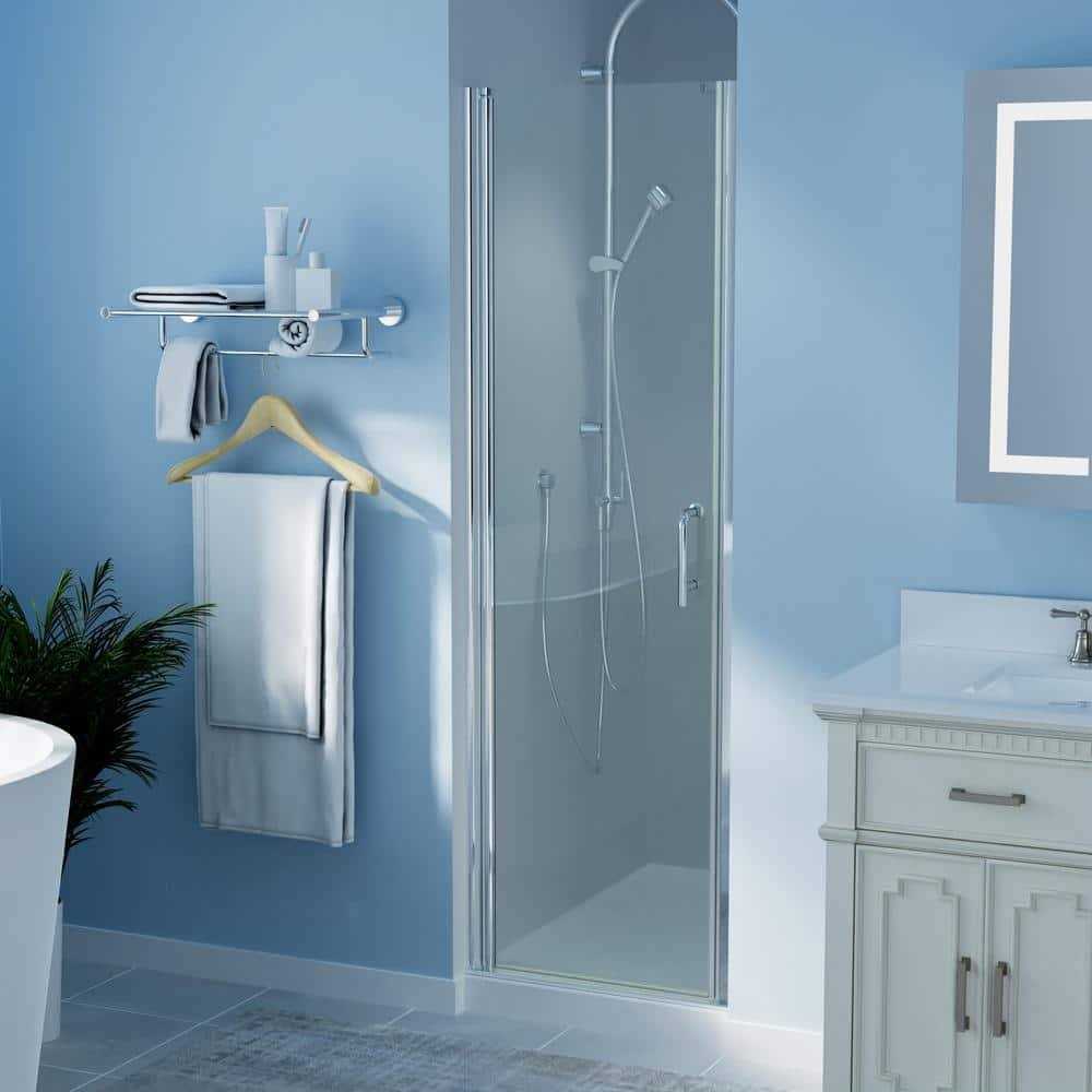 ES-DIY 24 in. to 25 in. W x 72 in. H Pivot Semi Frameless Swing Corner Shower Panel with Shower Door in Chrome with Clear Glass