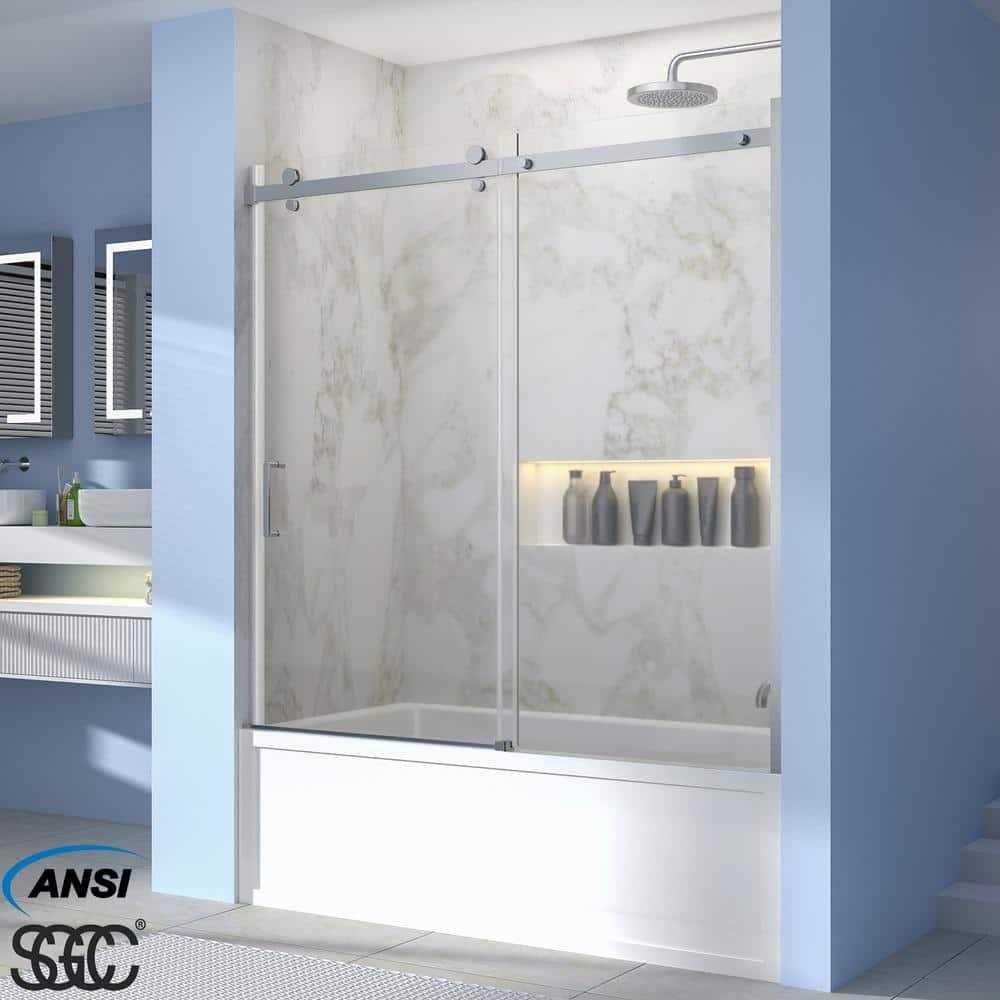 ES-DIY 58 in. H Sliding Frameless Tub Door in Chrome Clear Glass