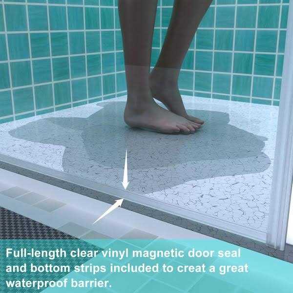 ES-DIY 72 in. H Fold Pivot Frameless Swing Corner Shower Panel with Shower Door in Black with Clear Glass