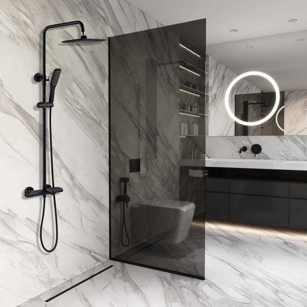 Flynama Modern Wall Bar Shower Kit 1-Spray 10 in. Square Rain Shower Head with Hand Shower