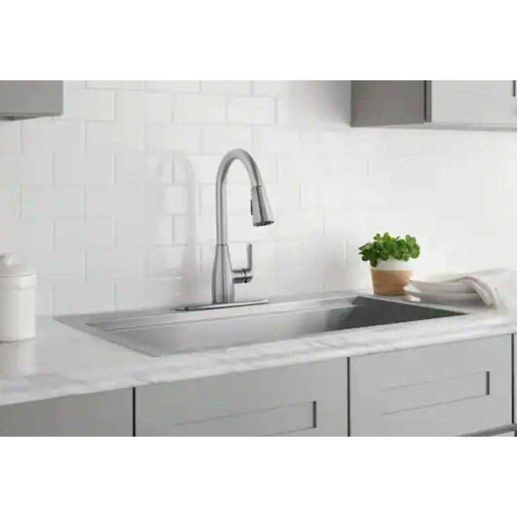 Glacier Bay McKenna Single-Handle Pull Down Sprayer Kitchen Faucet TurboSpray and FastMount