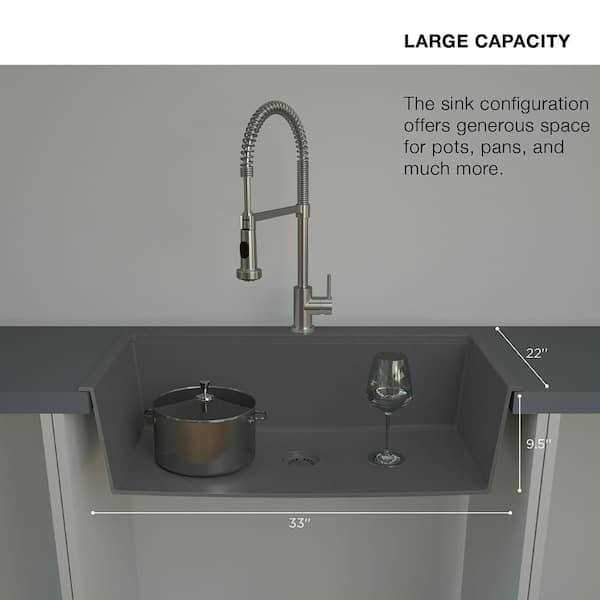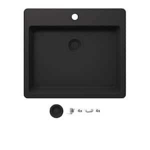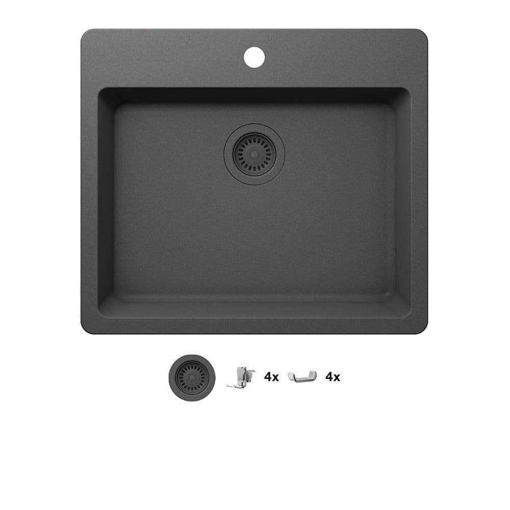 Glacier Bay Stonehaven Drop-in/Undermount Charcoal Gray Granite Composite 25 in Single Bowl Kitchen Sink with Gray Strainer