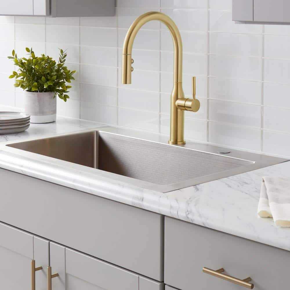 Glacier Bay Upson Single-Handle Pull-Down Sprayer Kitchen Faucet in Matte Gold