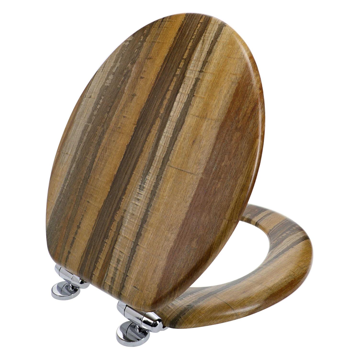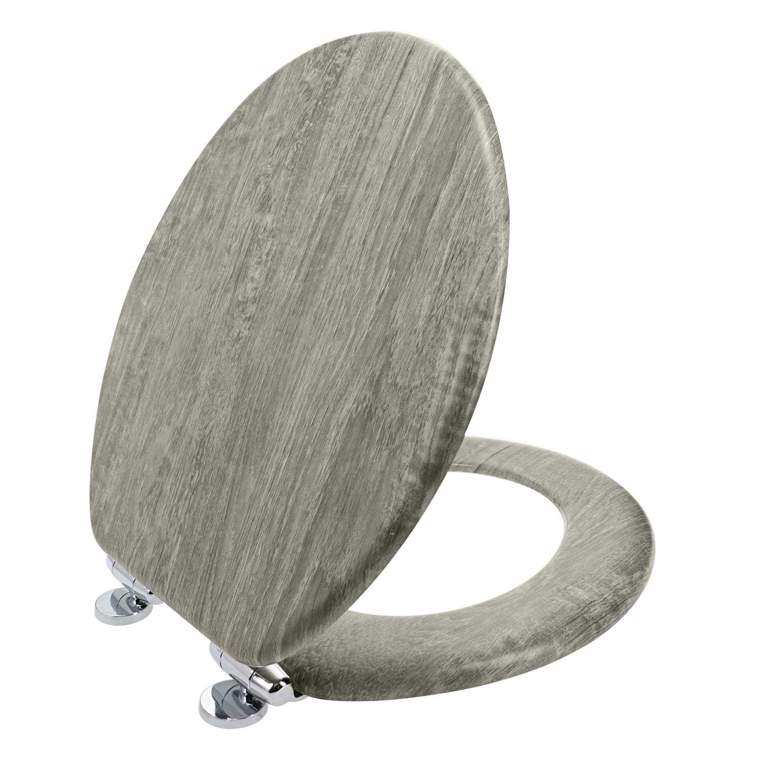 HOME + SOLUTIONS Round Distressed Wood Closed Front Toilet Seat