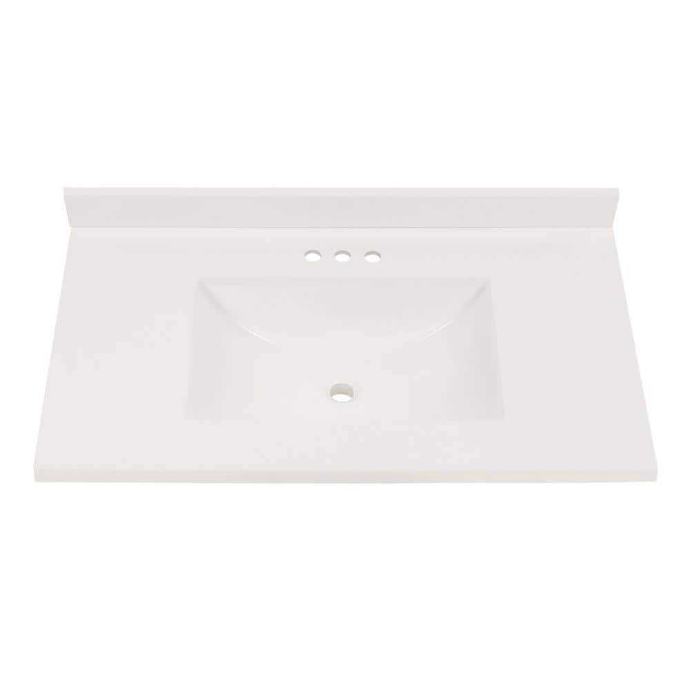 Home Decorators Collection 22 in. D Cultured Marble White Rectangular Single Sink Vanity Top in White