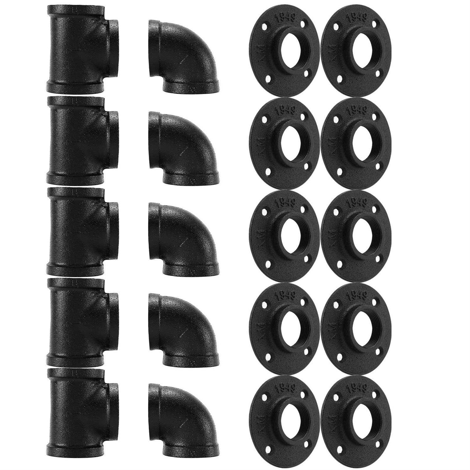 Home TZH Pipe Fitting 30 Pack Gray Floor Flange/Elbow/Tee Combo for Industrial vintage style