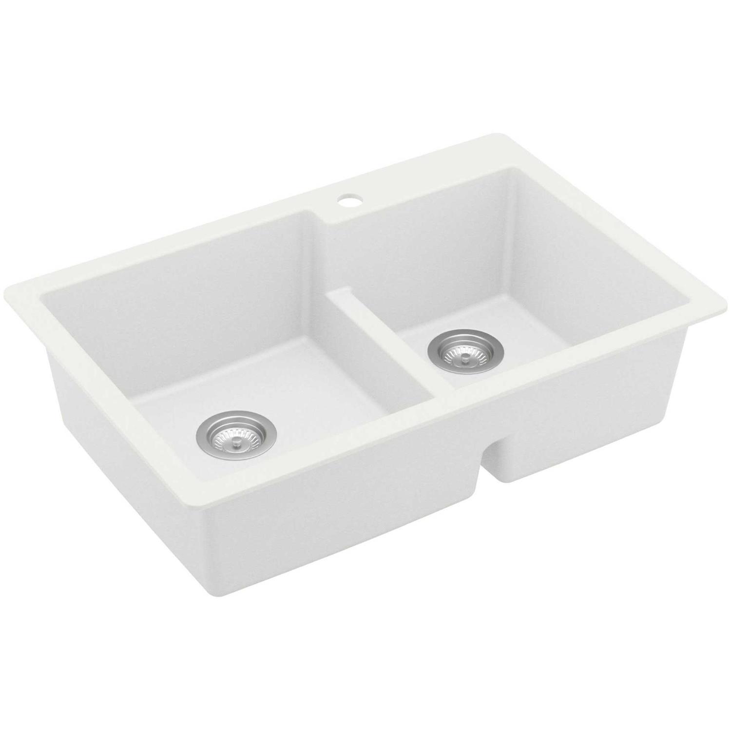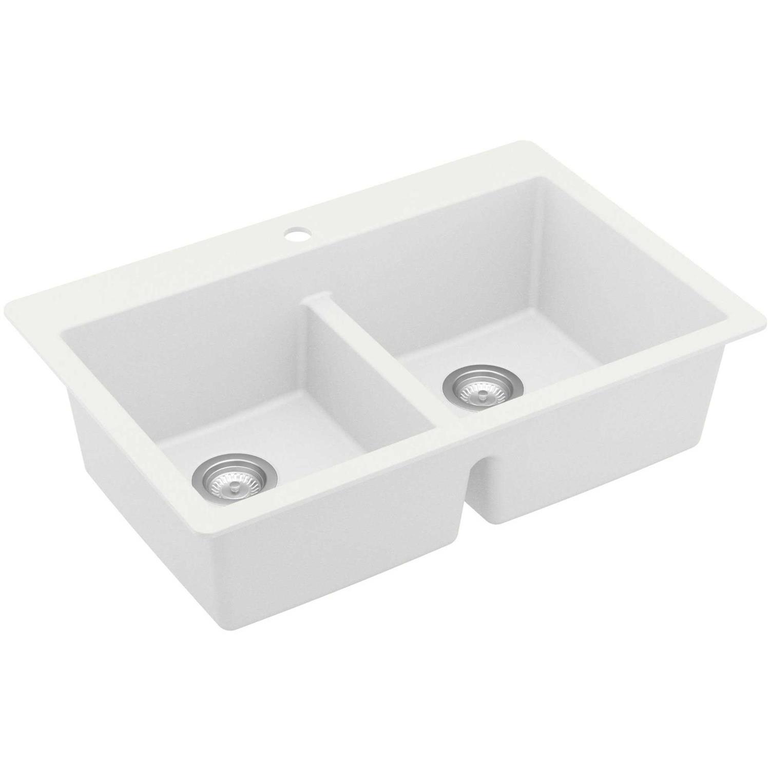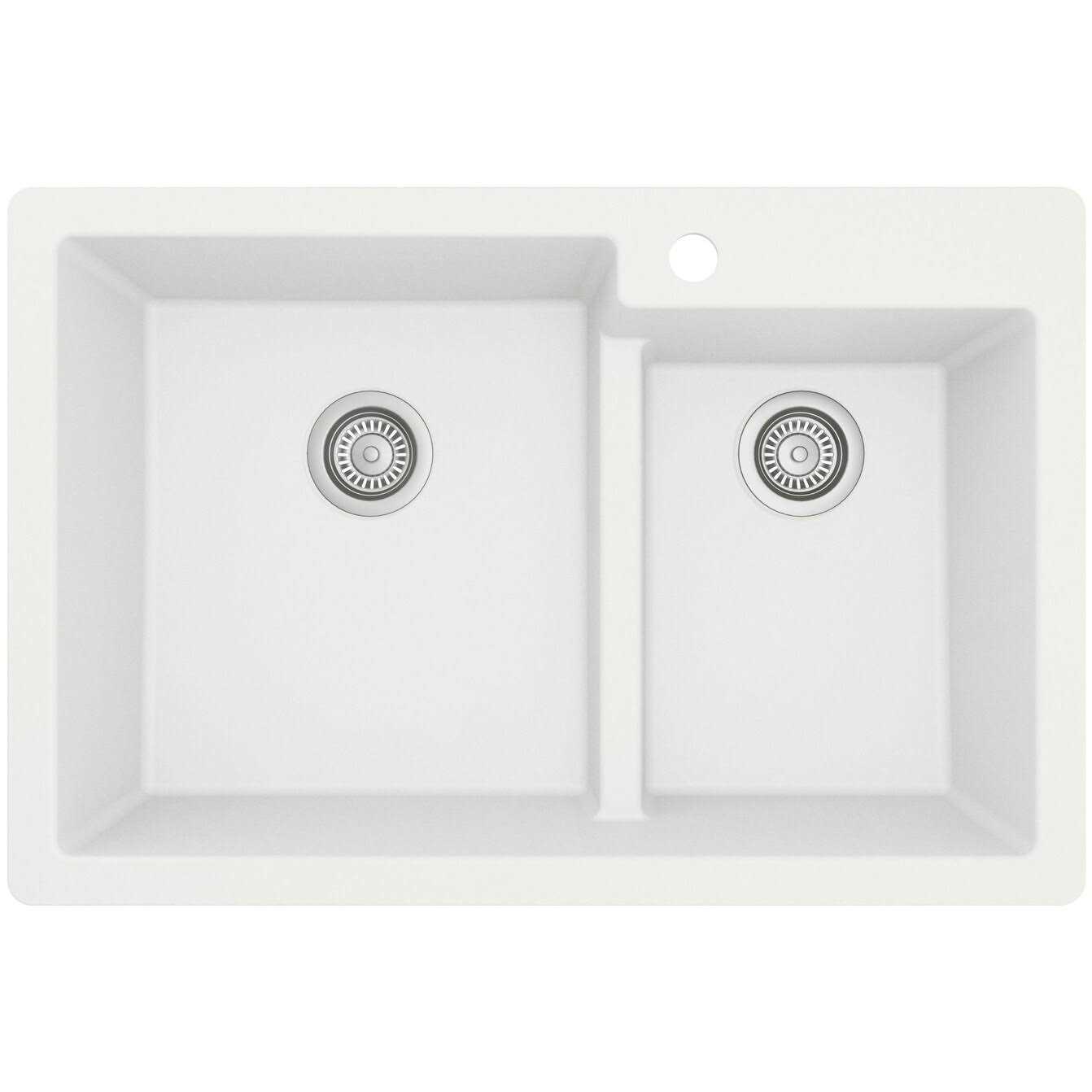 Karran QT-810 33 Top Mount Double Equal Bowl Quartz Kitchen Sink QT-810-WH