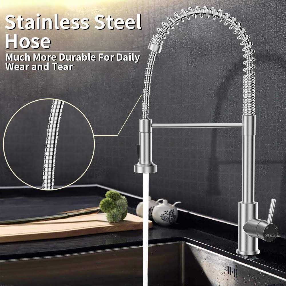 Kitchen Faucets with Pull Down Sprayer Brushed Nickel Commercial Spring Kitchen Sink Faucet High Arc