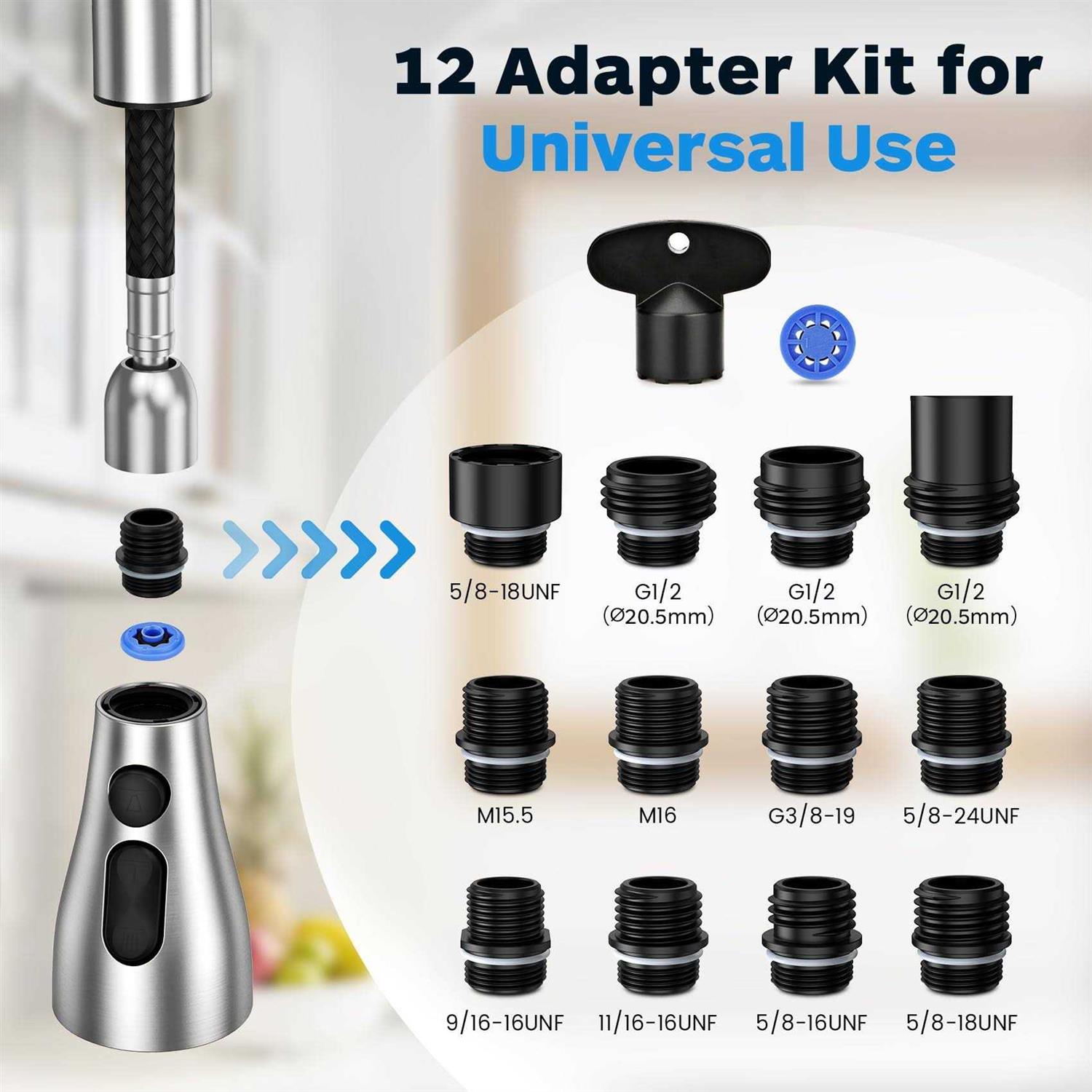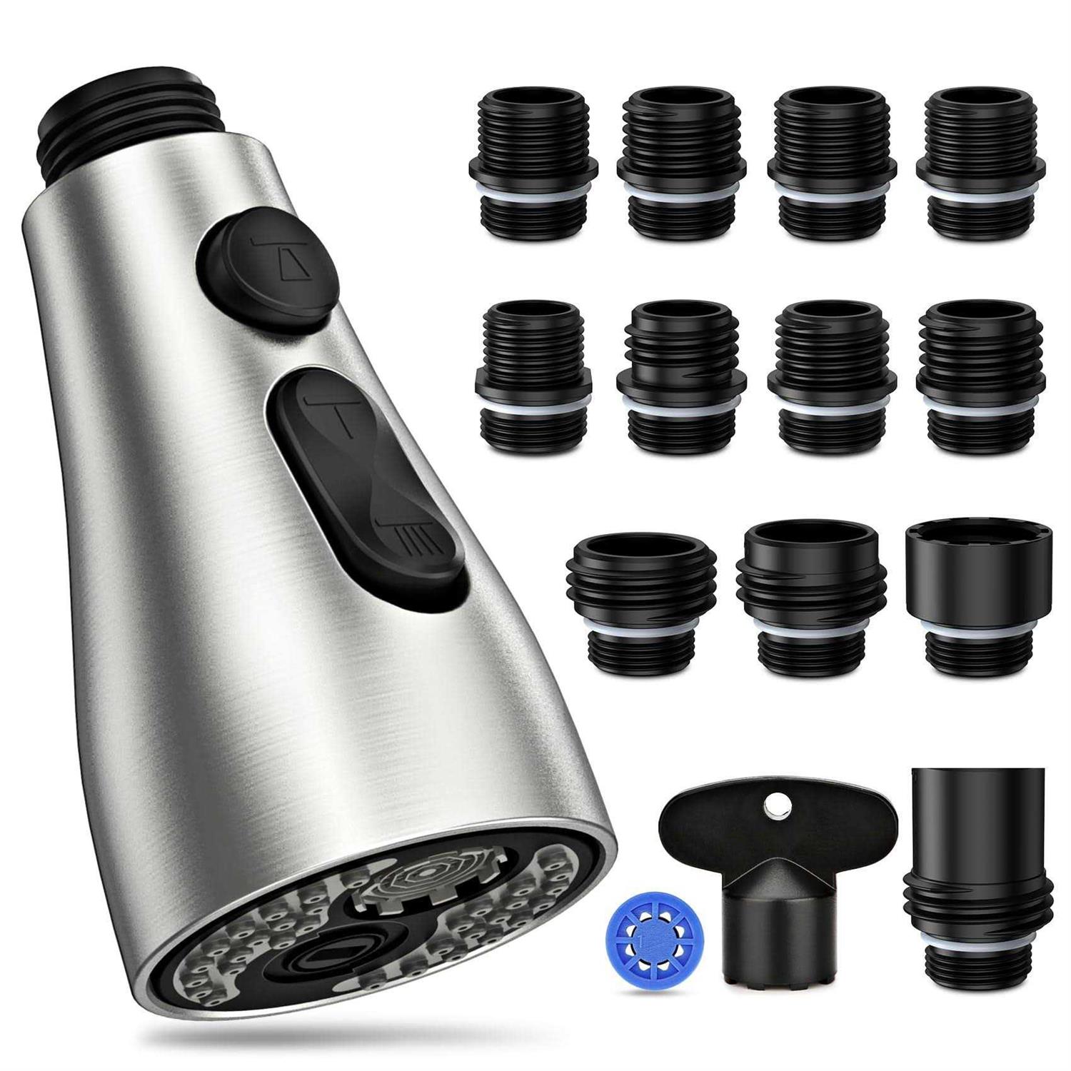 Kitchen Faucet Head Replacement 3 Modes with 12 Adapters Pull Down Spray Head for Kitchen Faucet