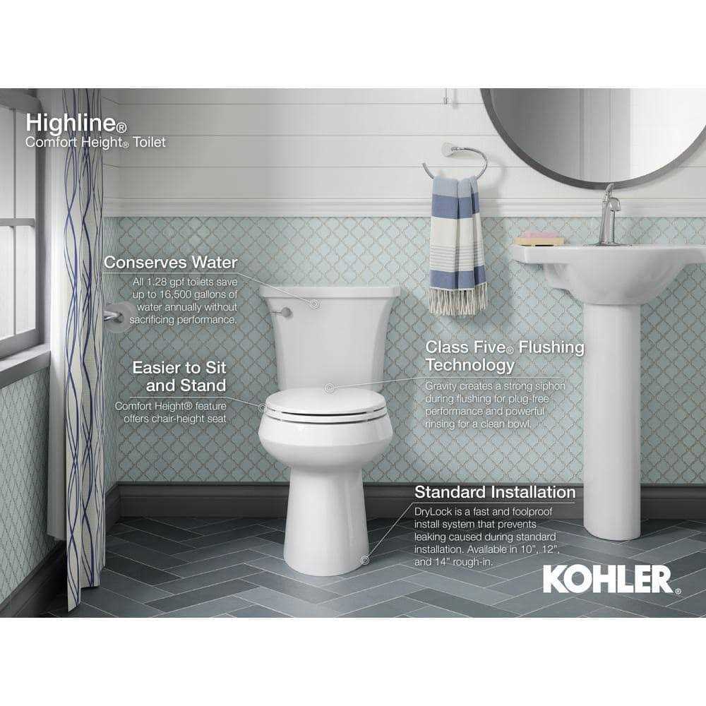 Kohler Highline Tall Two-Piece Elongated 1.28 GPF Tall Height Toilet