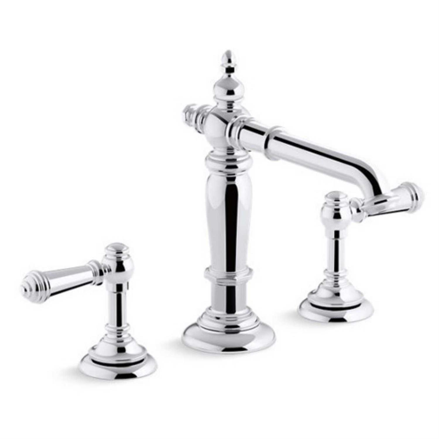Kohler K-72759-4 Artifacts Widespread Bathroom Faucet with Lever Handles – Free Metal Pop-Up Drain Assembly with purchase Polished Chrome Faucet