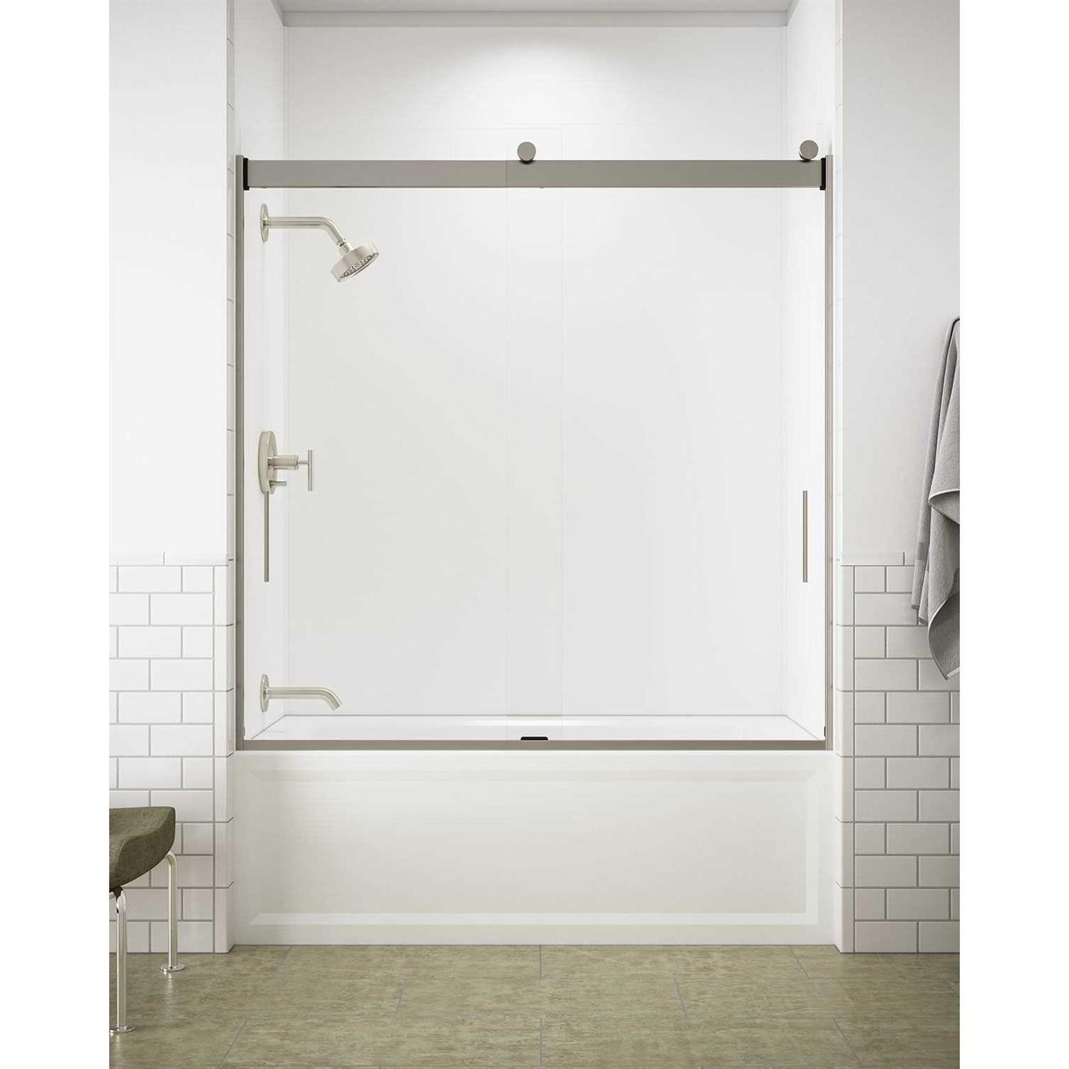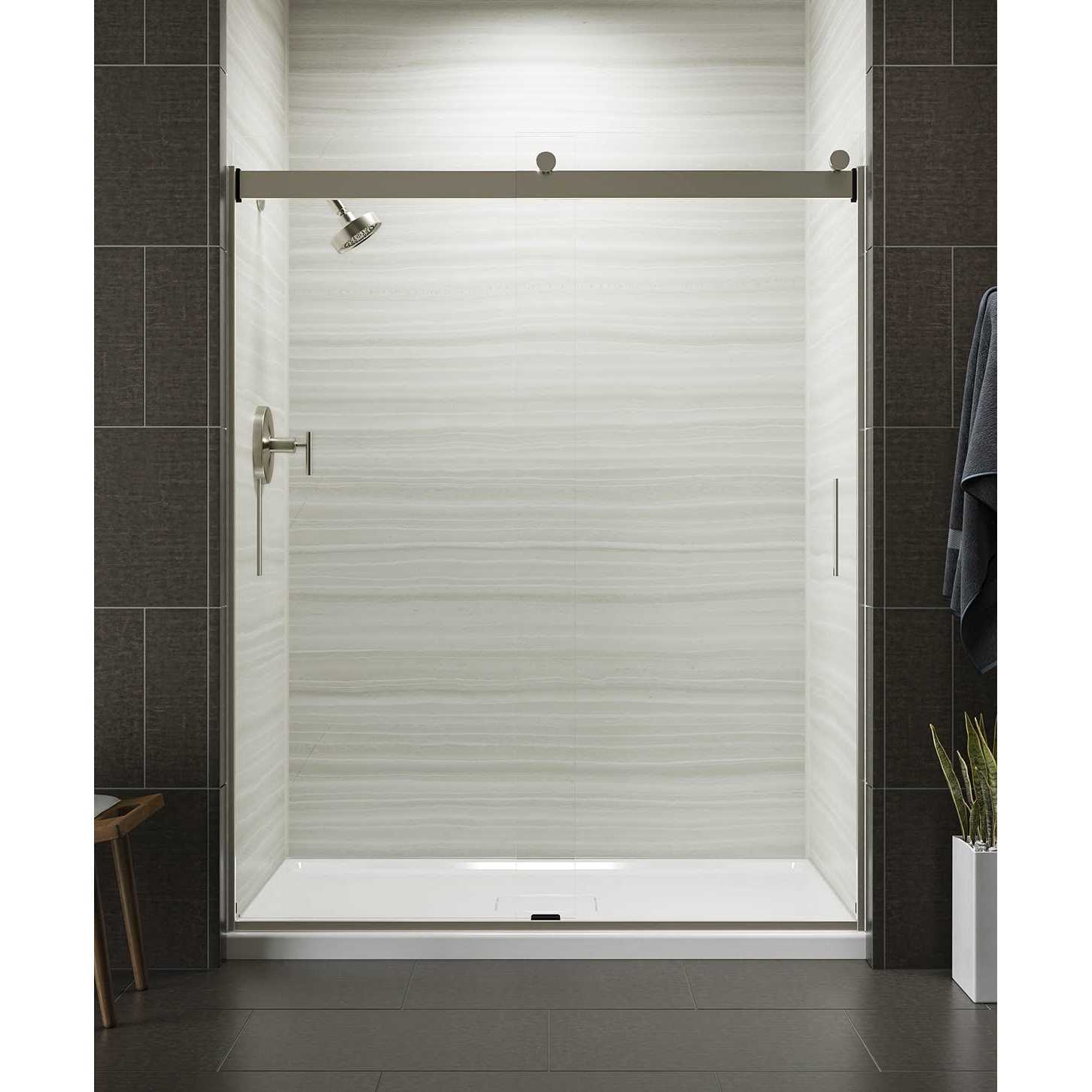 KOHLER Levity 56-60 in. W x 74 in. H Frameless Sliding Shower Door in Bright Silver with Blade Handles