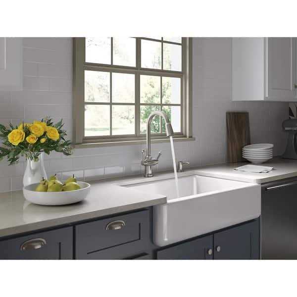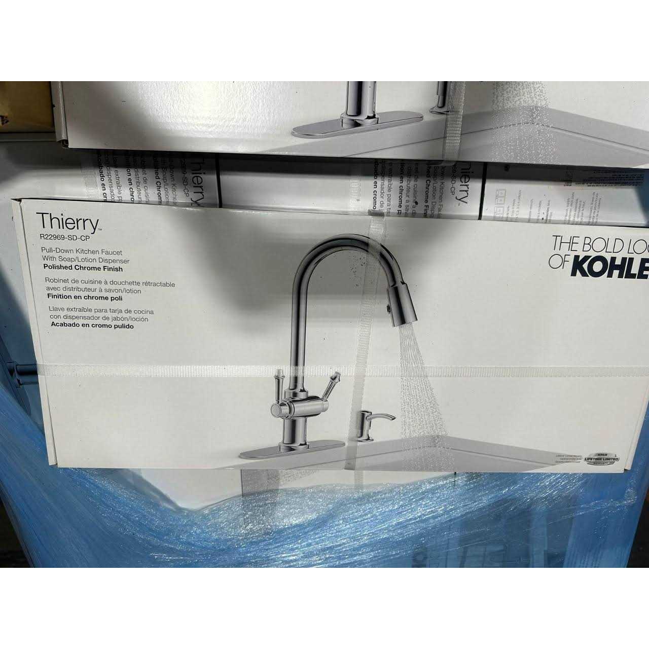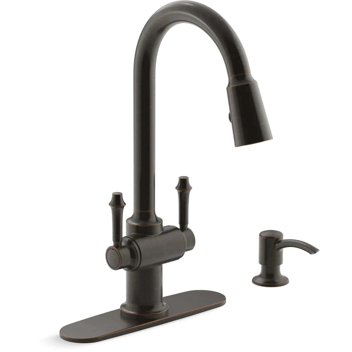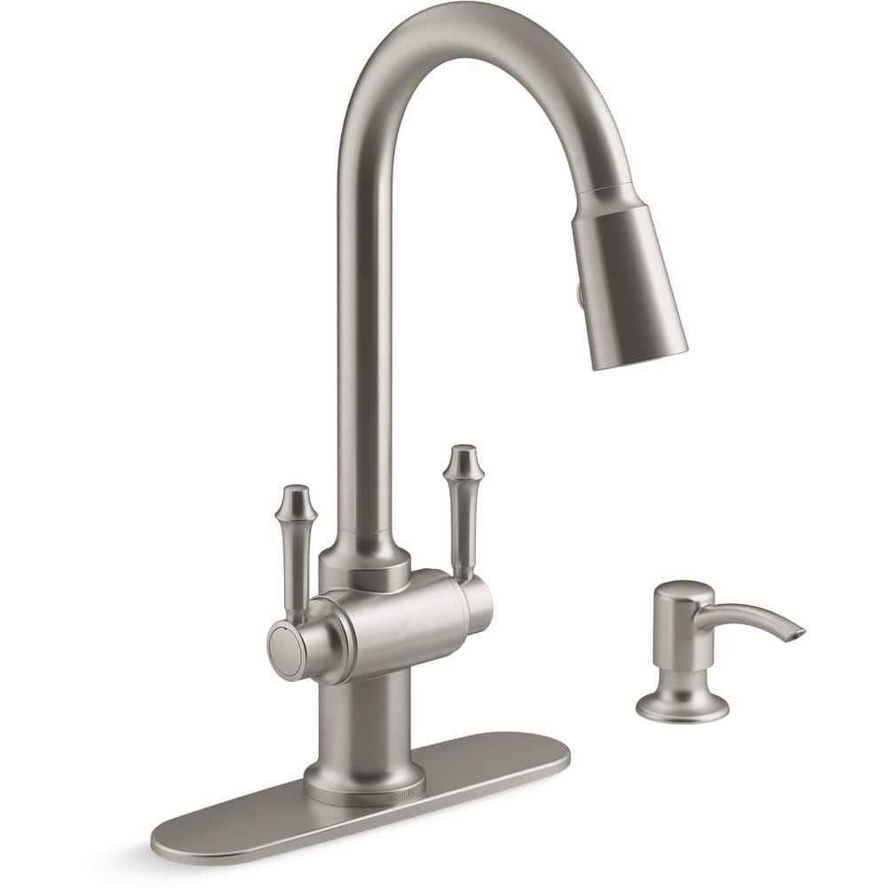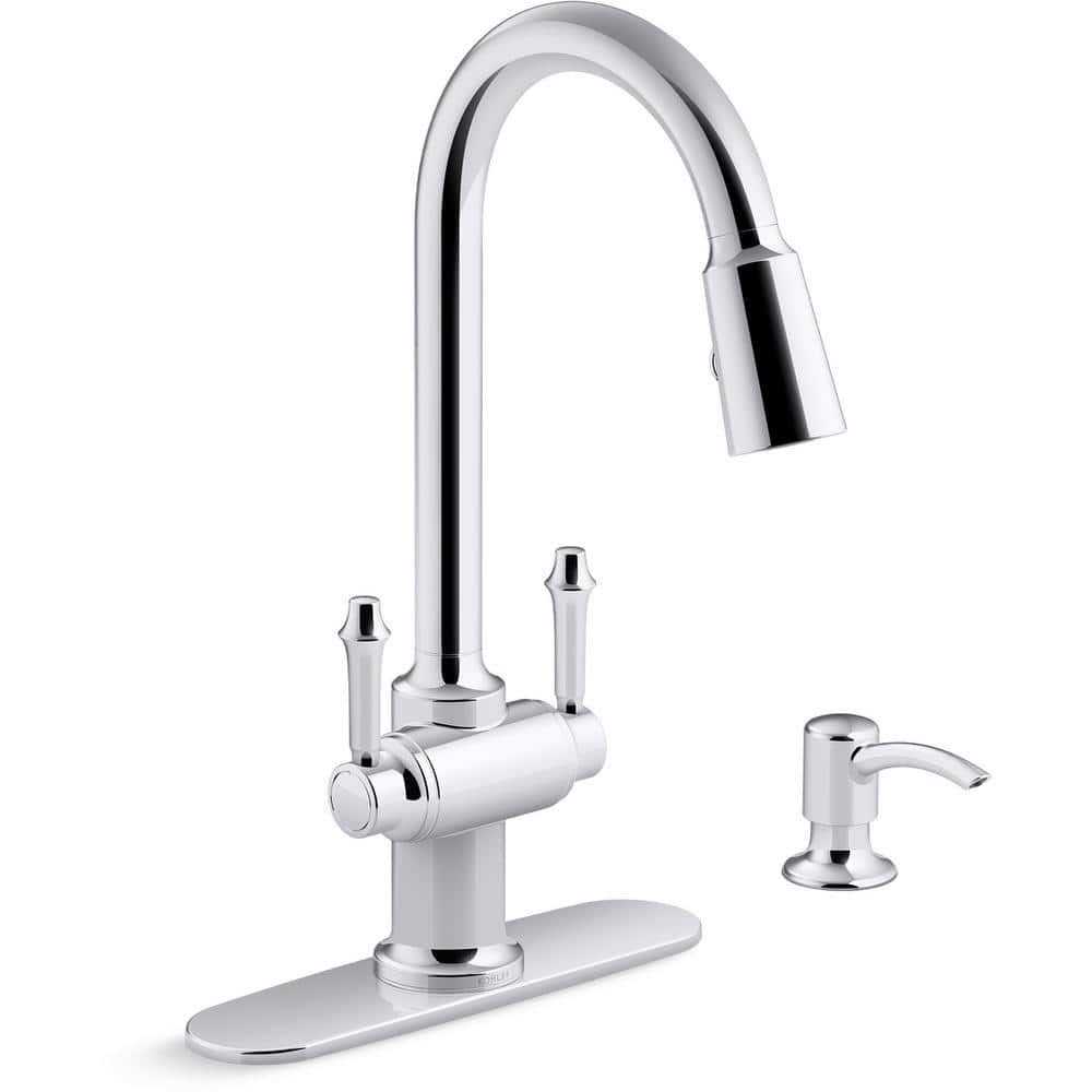KOHLER Thierry Two Handle Pull-Down Sprayer Kitchen Faucet with Soap Dispenser