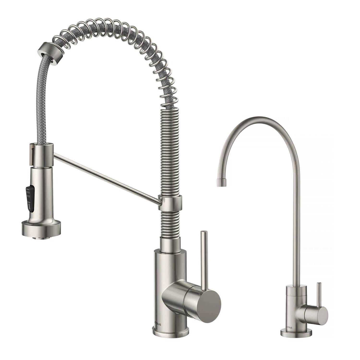 Kraus Bolden Commercial Style Pull-Down Kitchen Faucet and Purita Water Filter Faucet Combo