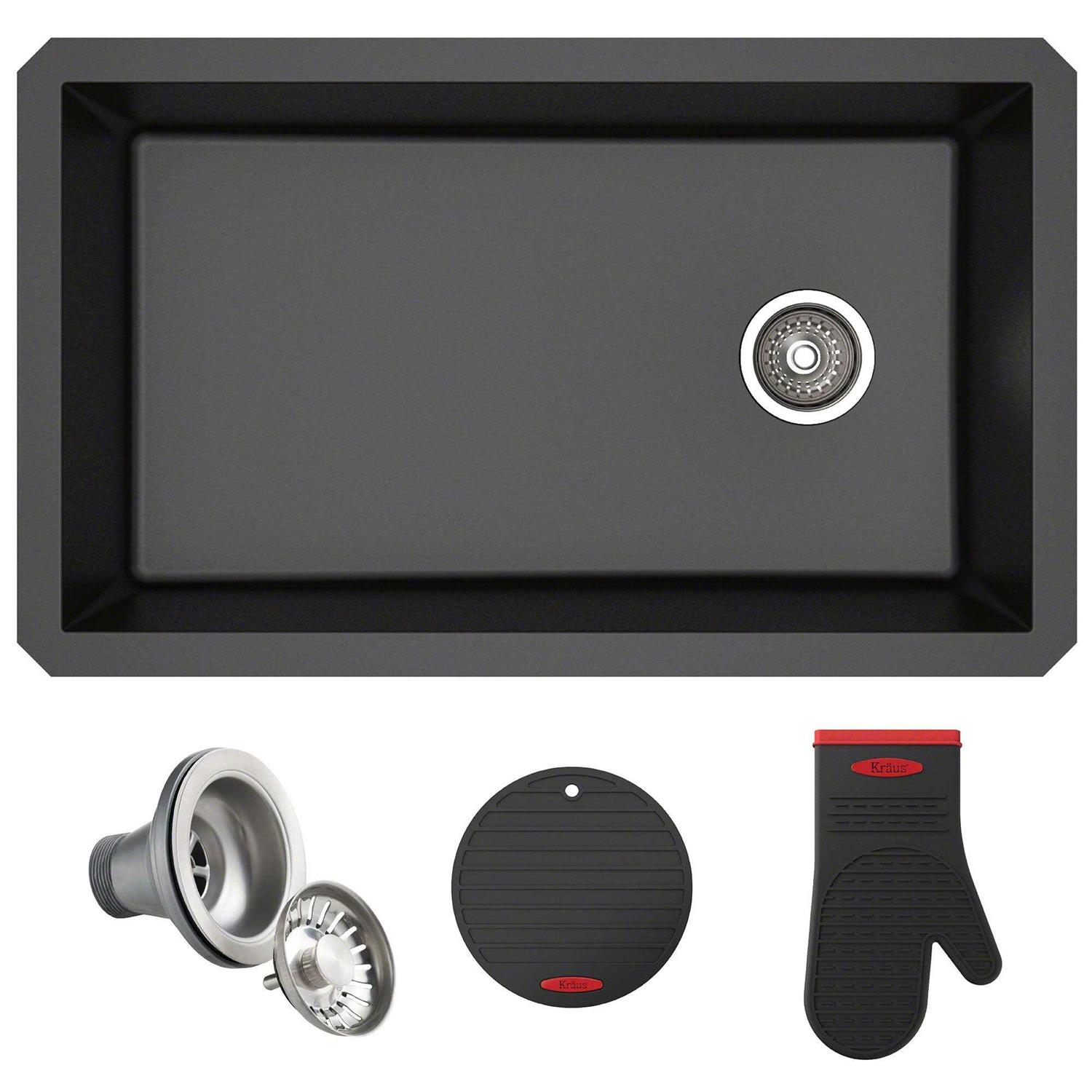 Kraus Forteza 32 Undermount Single Bowl Granite Kitchen Sink KGU-55BLACK