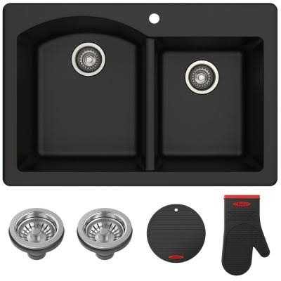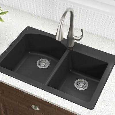 Kraus Forteza KGD-50BLACK Dual Mount 60/40 Double Bowl Granite Kitchen Sink