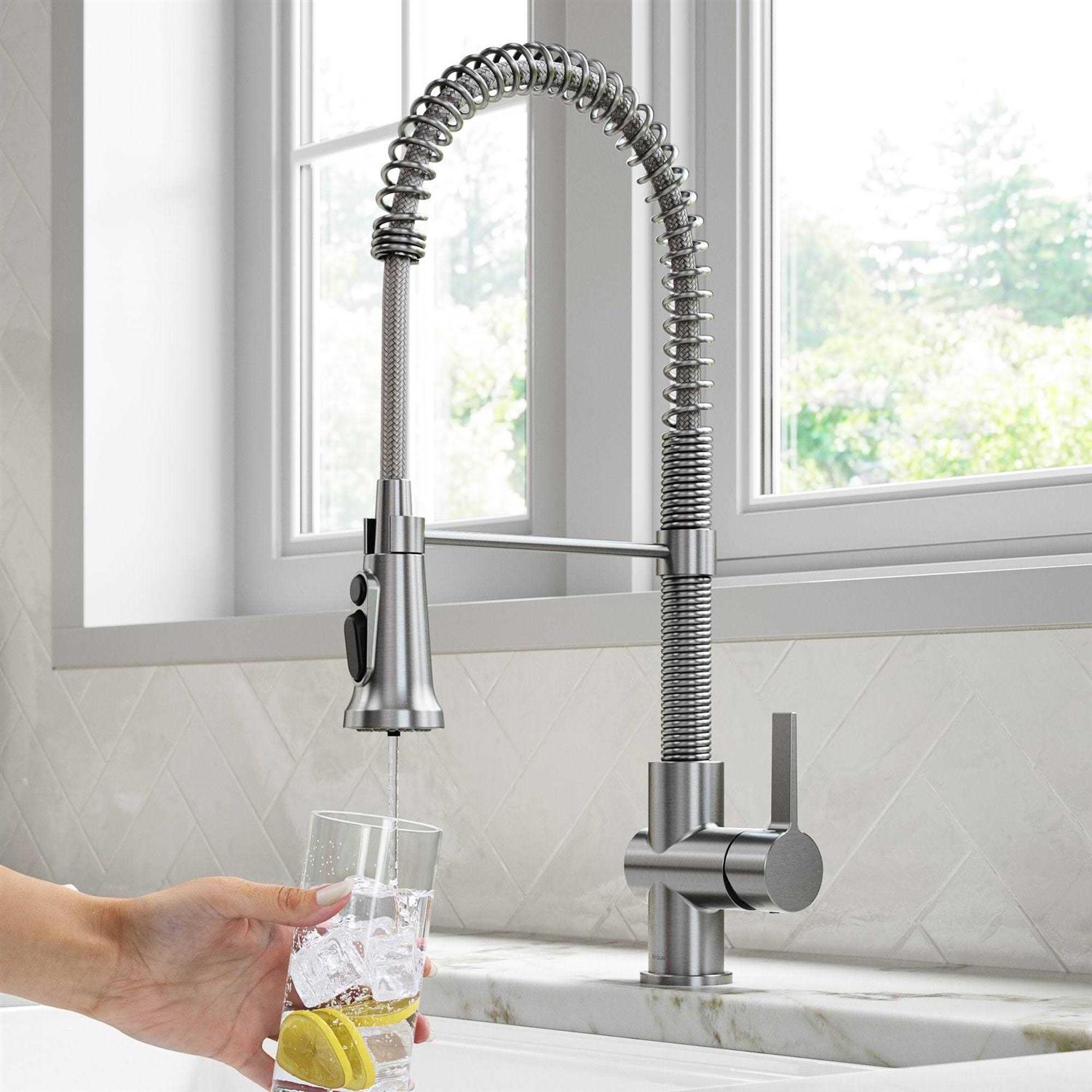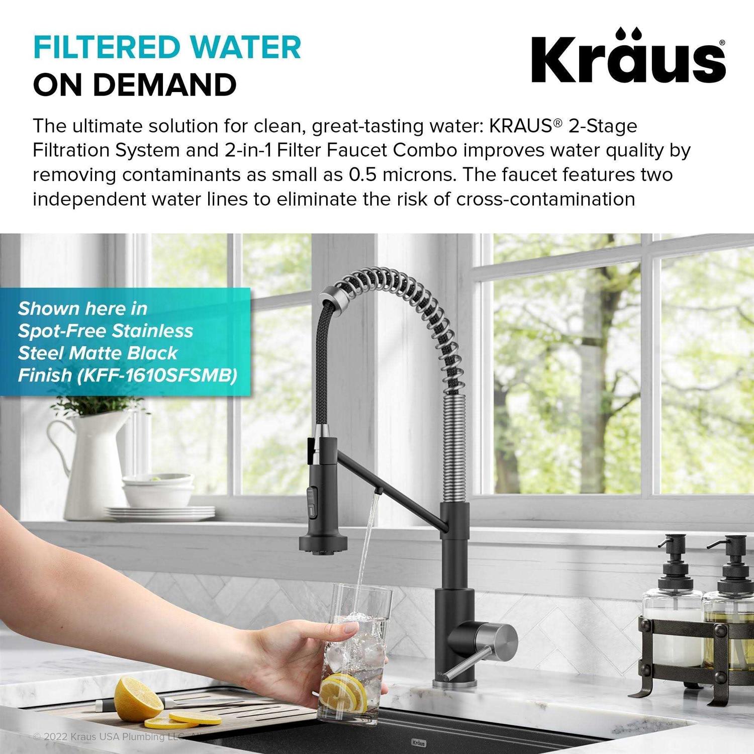 Kraus FS-1000-KFF-1610SFS Bolden 2-in-1 Commercial Style Pull-Down Single Handle Water Filter Kitchen Faucet with Purita 2-Stage Under-Sink Filtration