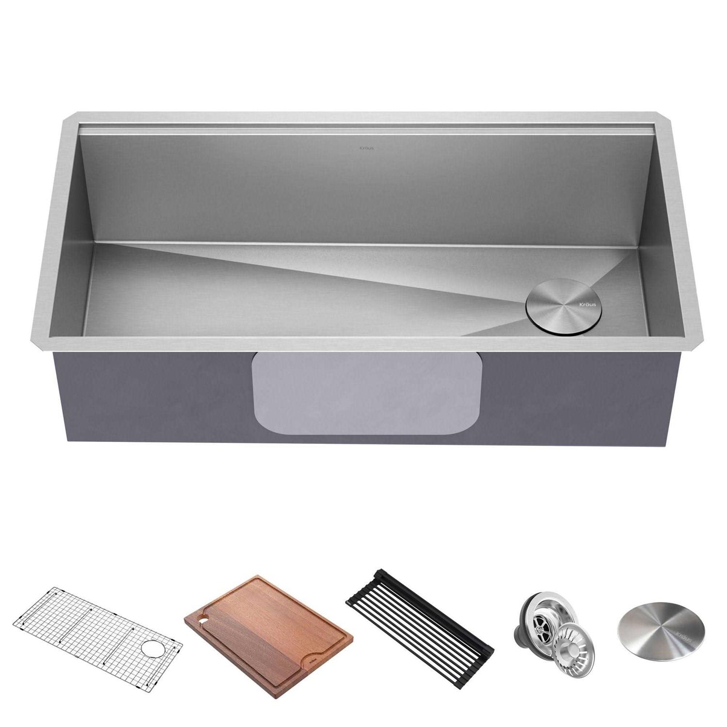 Kraus Kore 16 Gauge Stainless Steel 36 in. Single Bowl Undermount Workstation Kitchen Sink with Accessories KWU110-36