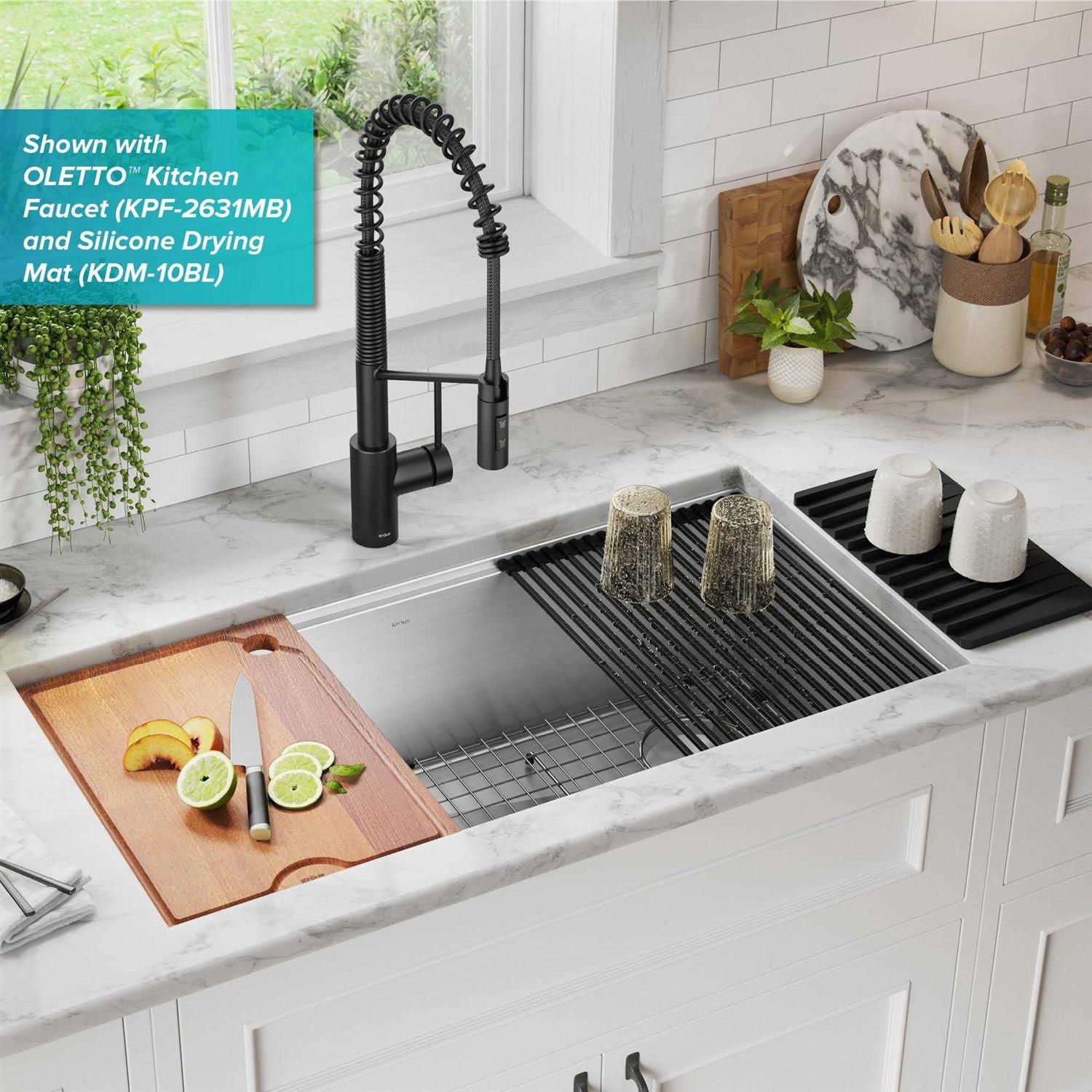 Kraus KGUW2-33MBL Bellucci Workstation Undermount Granite Composite Single Bowl Kitchen Sink with Accessories