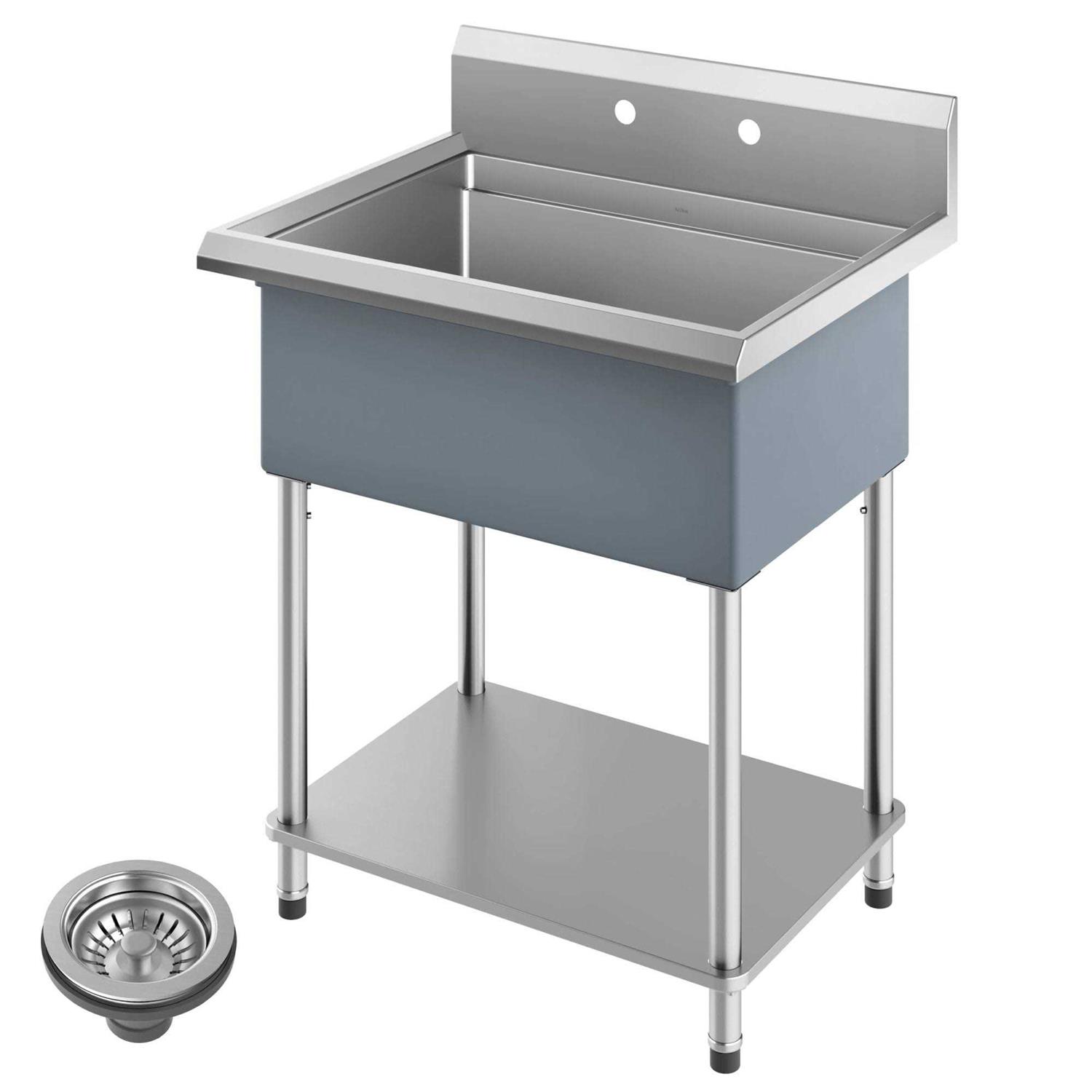 Kraus Kore 32 18-Gauge Workstation Stainless Steel Single Bowl Commercial Utility Laundry Sink for Wall Mount Faucet KWS100-32