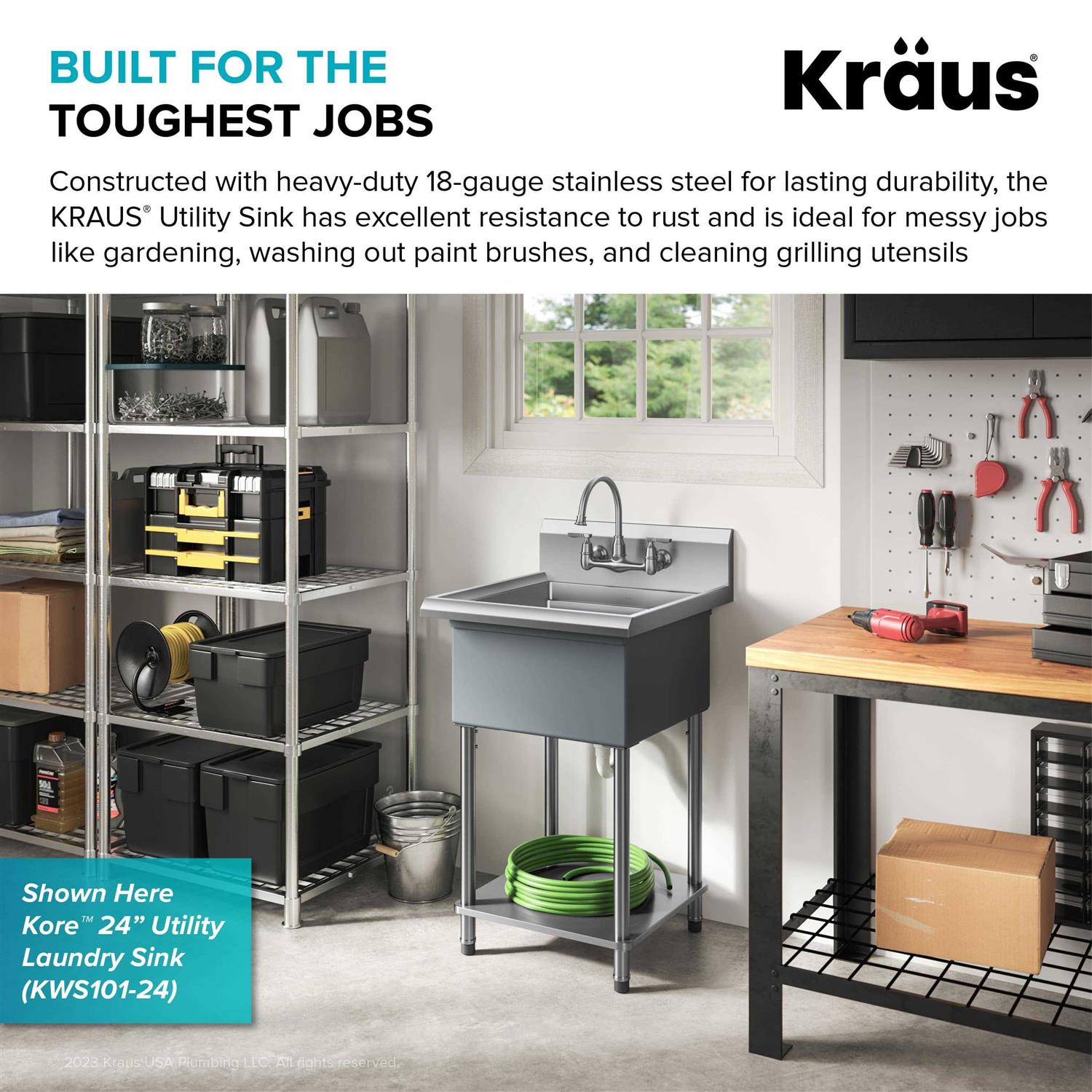 Kraus Kore 19 18-Gauge Workstation Stainless Steel Single Bowl Commercial Utility Laundry Sink for Wall Mount Faucet KWS101-19