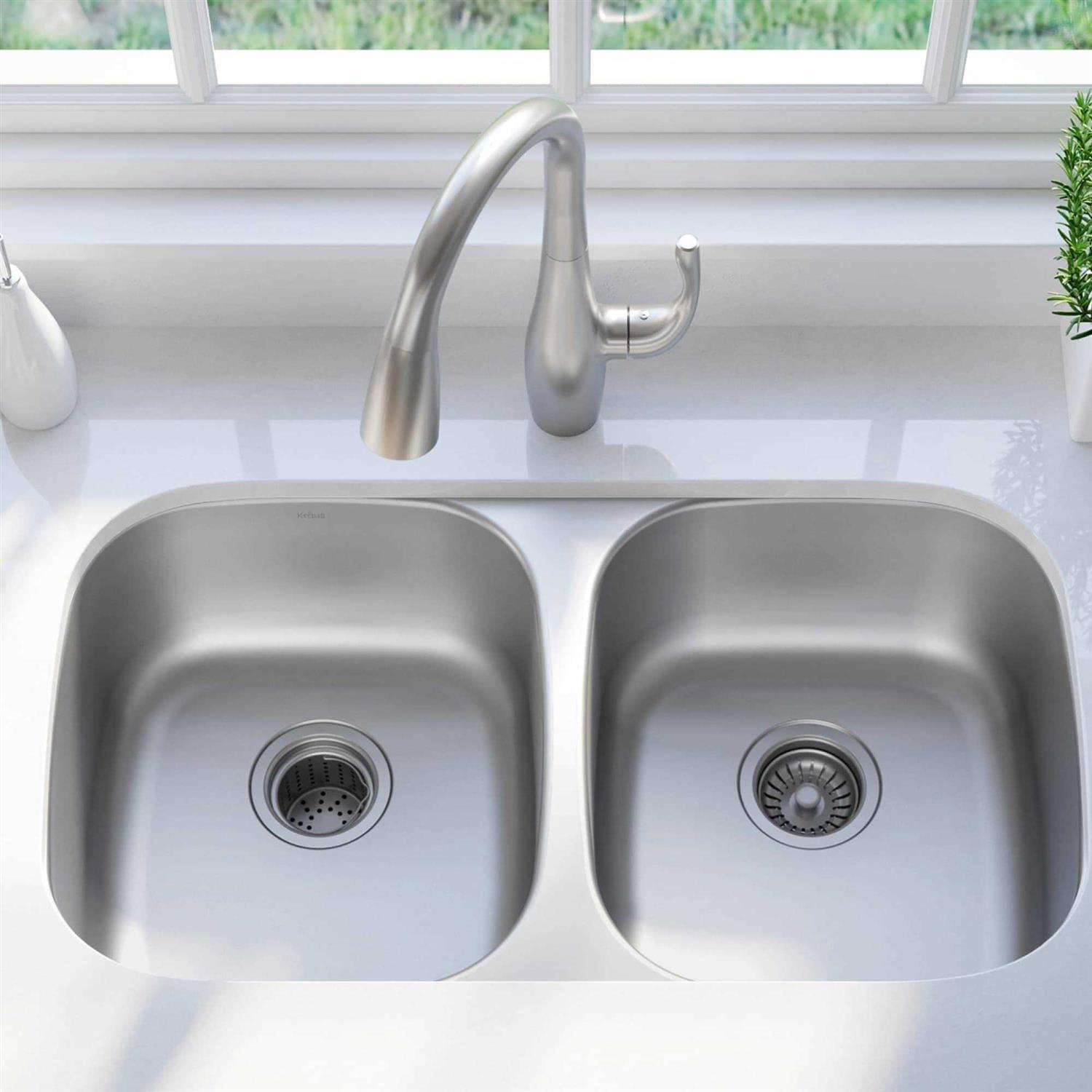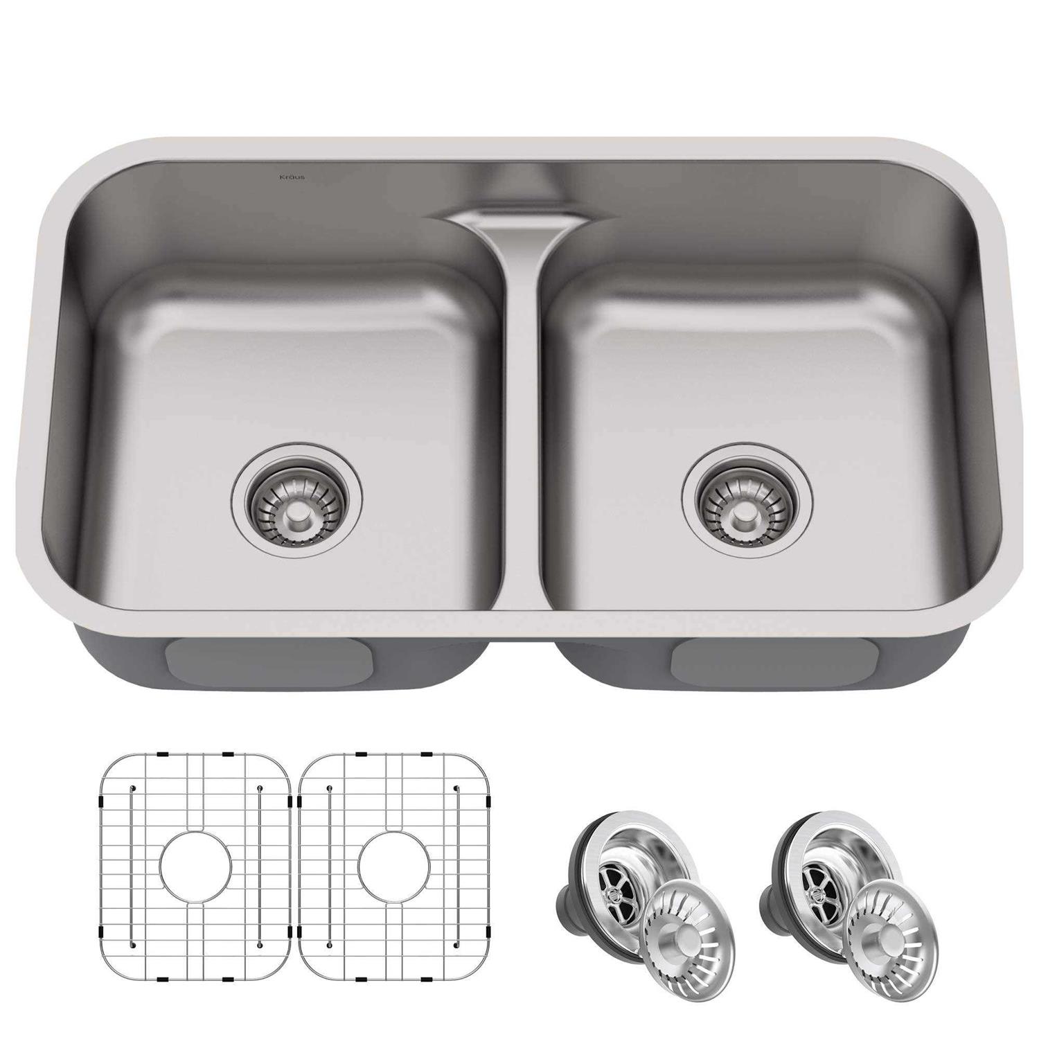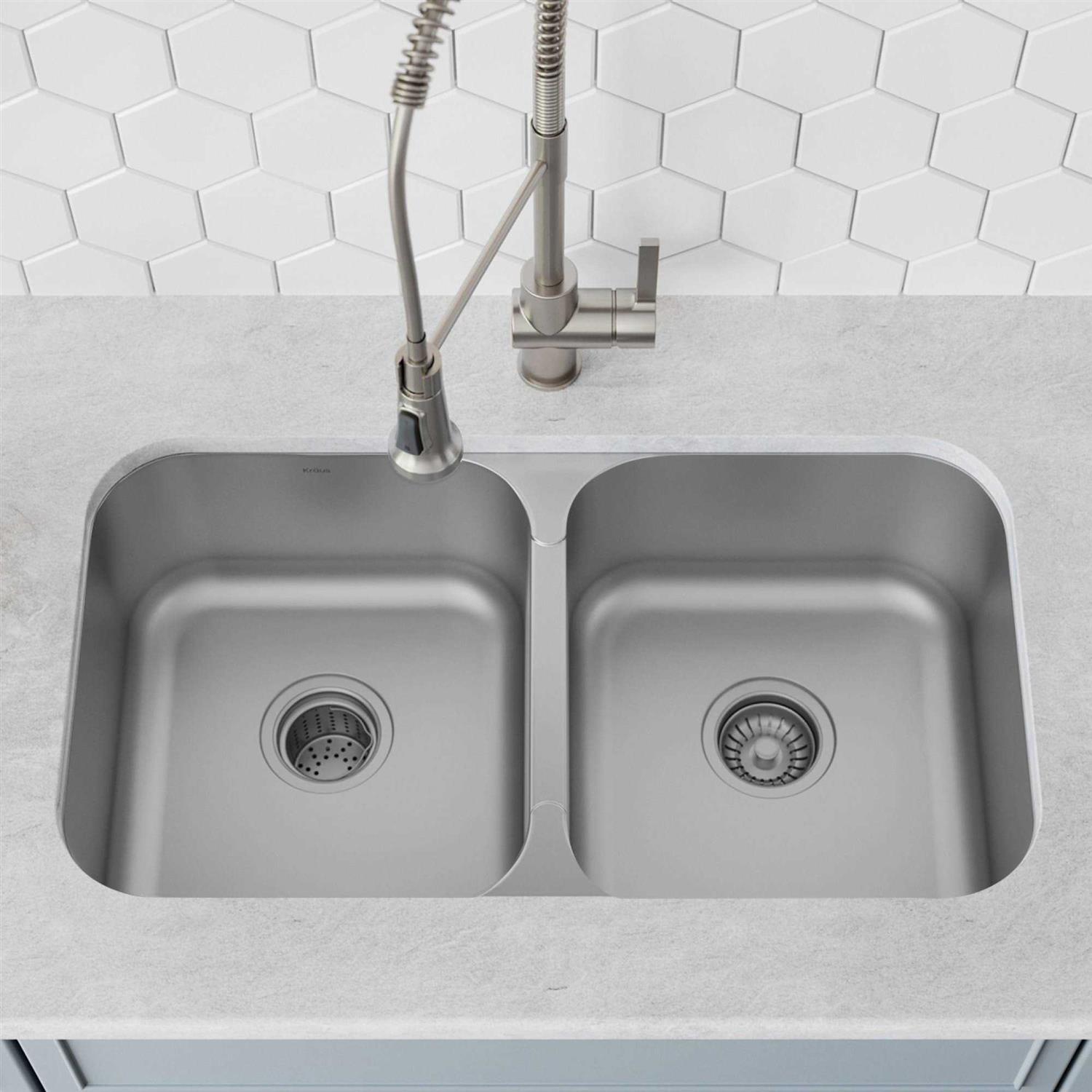 Kraus Premier 32-inch 16 Gauge Undermount 50/50 Double Bowl Stainless Steel Kitchen Sink KBU32