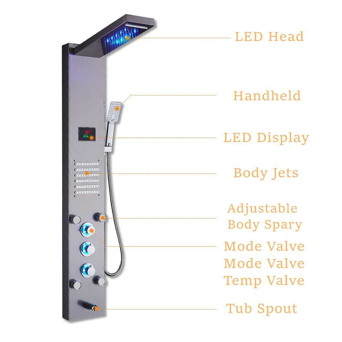 LED Shower Panel Tower Rainfall Shower Head with Rain Massage Body Jets Shower System