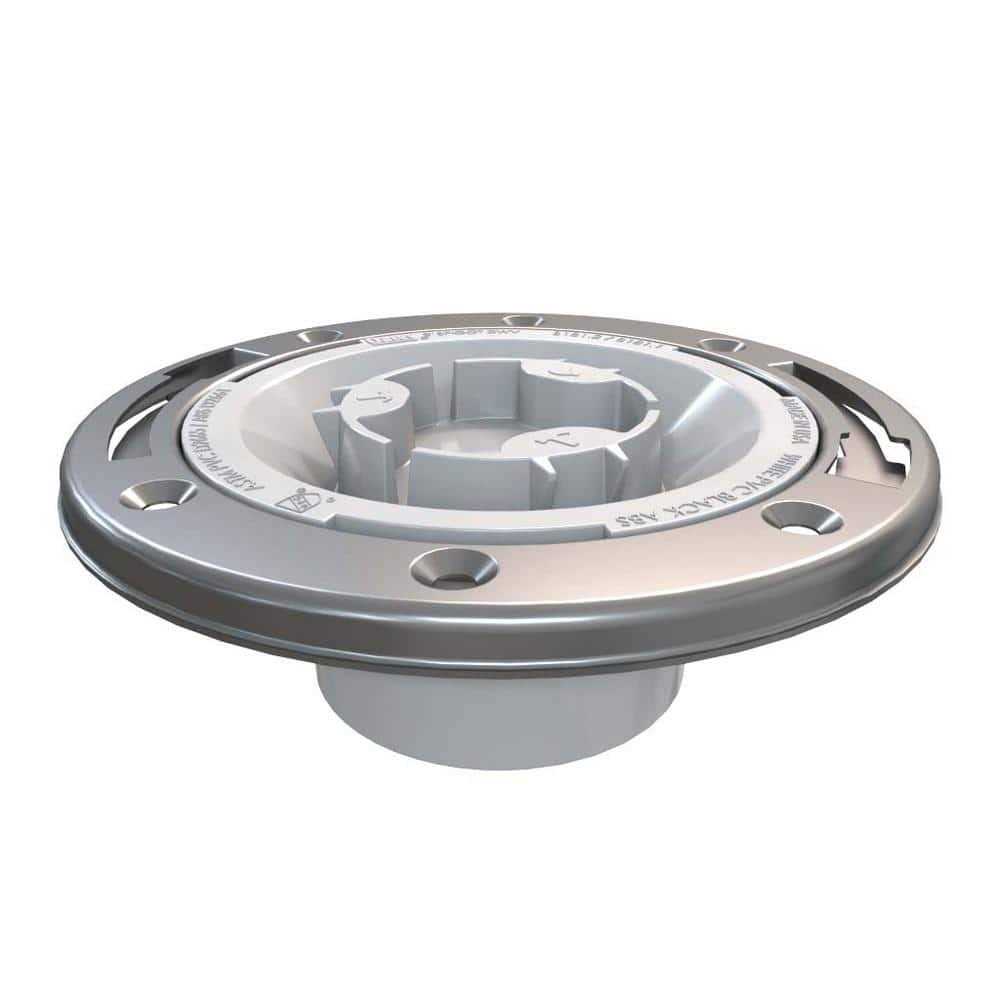 Oatey Fast Set 3×4 PVC, Hub Toilet Flange with Test Cap and Stainless Steel Ring