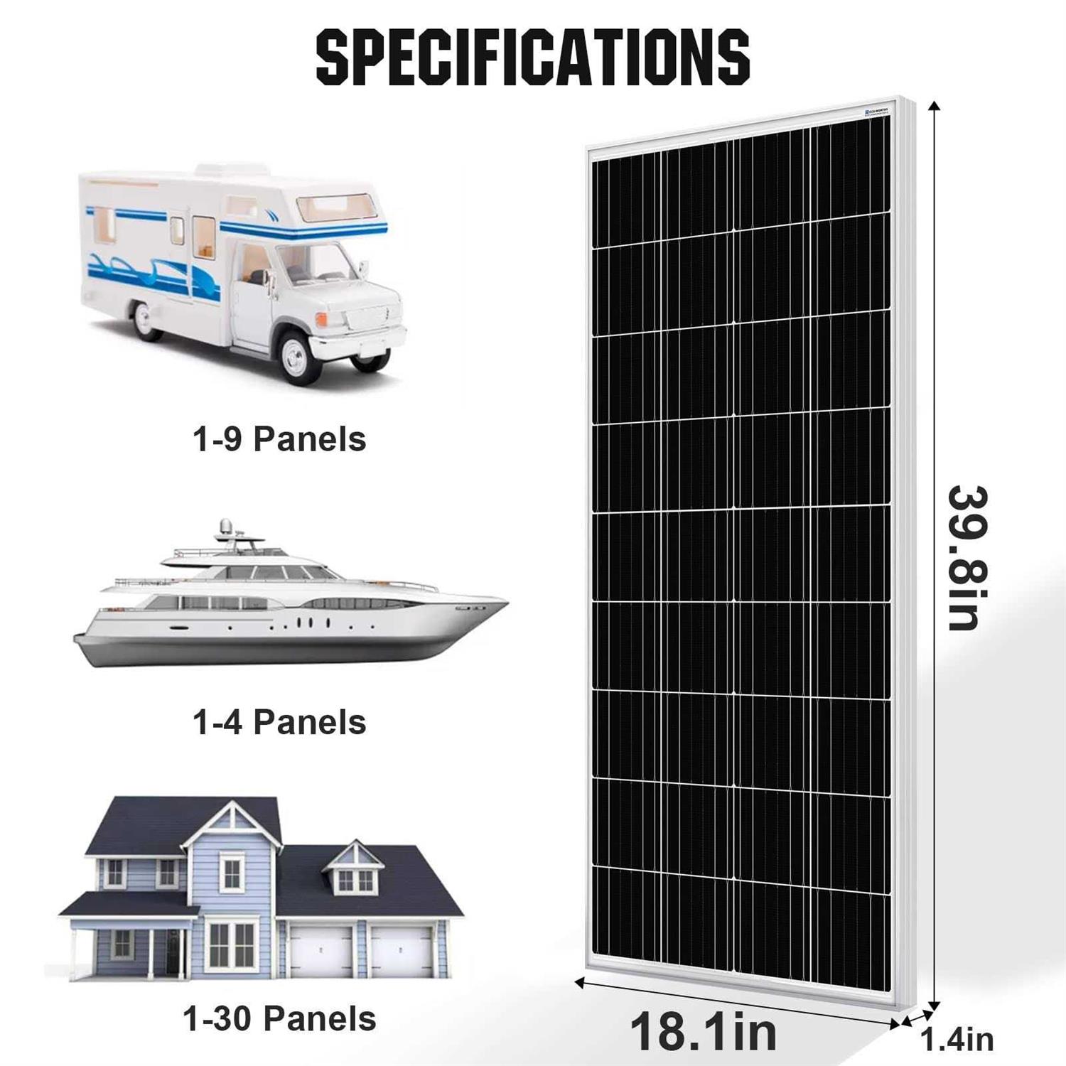ECO-WORTHY 2pcs 100 Watt Solar Panels 12 Volt Monocrystalline Solar Panel for RV Marine Boat and Other Off-Grid Applications